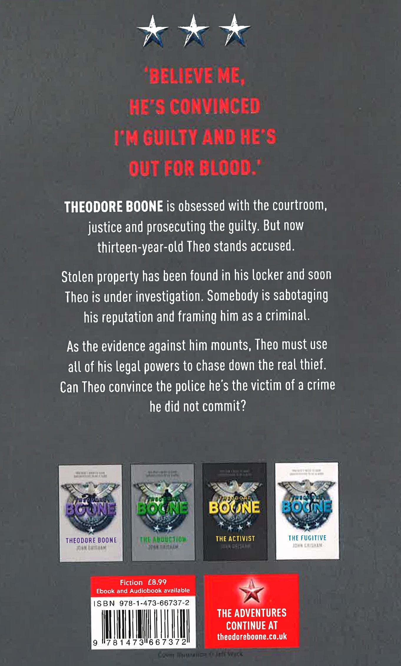Book 3 in the thrilling young mystery series from internationally bestselling author John Grisham Big trouble is brewing for Theodore Boone. While all of Streenburg anxiously awaits the new trial of infamous murder suspect Pete Duffy, problems arise for their own kid lawyer. There's been a robbery and Theo is the accused. His reputation is on the line, and with the evidence building against him--and dangerous threats looming--Theo will do whatever it takes to prove his innocence--even if it means breaking a few rules. Filled with the intrigue and page-turning suspense that made John Grisham a #1 international bestseller and the undisputed master of the legal thriller, Theodore Boone's adventures will keep readers enthralled until the very last page.