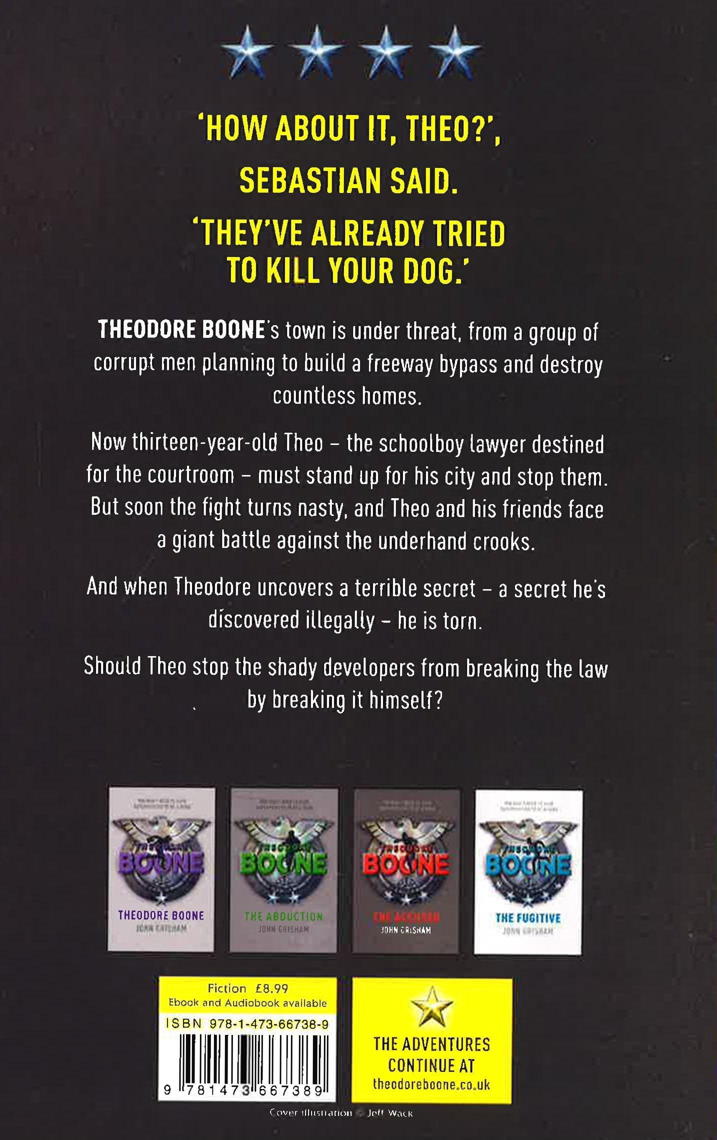 Theodore Boone's town is under threat, from a group of corrupt men planning to build a freeway bypass and destroy countless homes.