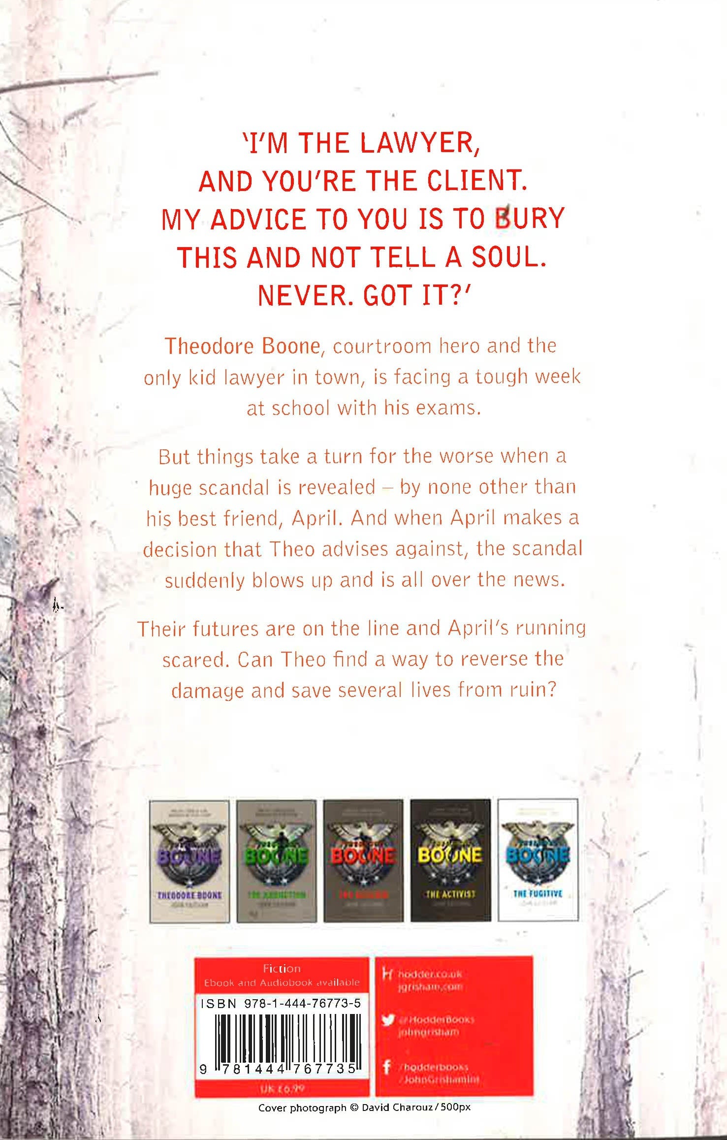John Grisham delivers high intensity legal drama for a new generation of readers in the sixth novel in his bestselling Theodore Boone series. I'm the lawyer, and you're the client. My advice to you is to bury this and not tell a soul. Never. Got it?'Theodore Boone, courtroom hero and the only kid lawyer in town, is facing a tough week at school with his exams.But things take a turn for the worse when a huge scandal is revealed - by none other than his best friend, April. And when April makes a decision that Theodore advises against, the scandal suddenly blows up and is all over the news. Their futures are on the line and April's running scared. Can Theodore find a way to reverse the damage and save several lives from ruin?***********************What readers are saying about THEODORE BOONE: THE SCANDAL'A great story' - 5 stars'Fantastic' - 5 stars'John Grisham at his best' - 5 stars'Excellent - another great book by John Grisham' - 5 stars'An excellent read, as usual' - 5 stars