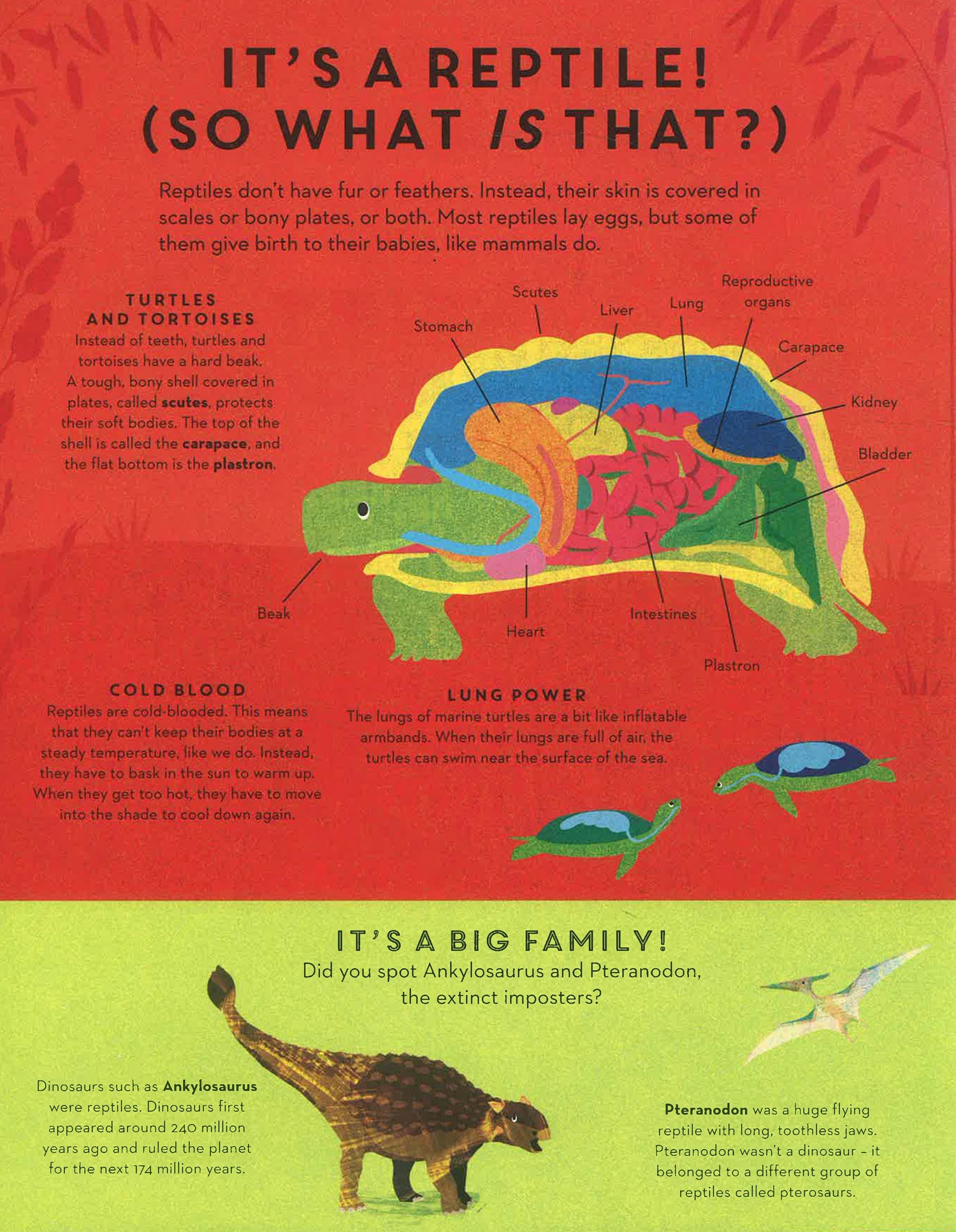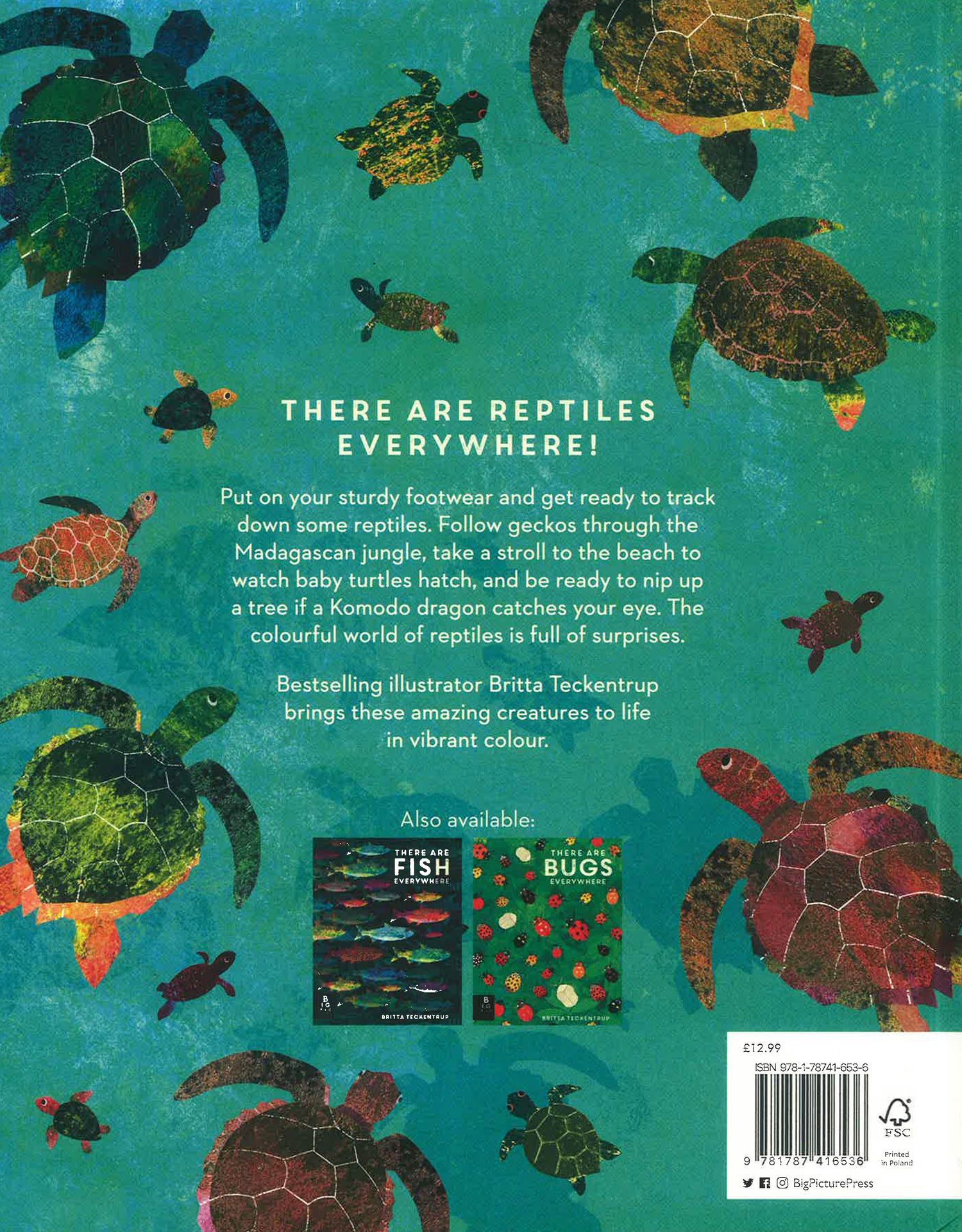 There are Reptiles Everywhere is the third in a series of non-fiction books from Britta Teckentrup. Young readers will learn where in the world all sorts of reptiles can be found, and the weird and wonderful things about them that they never imagined were true.