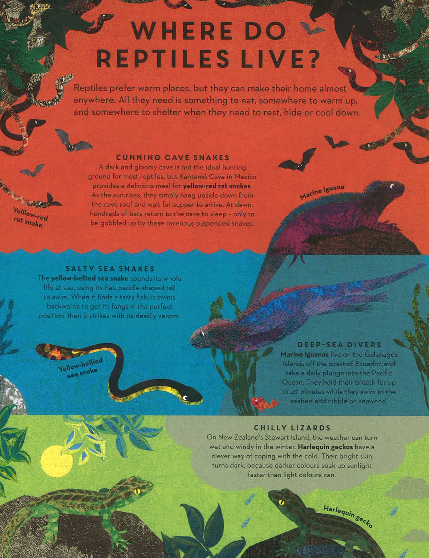 There are reptiles everywhere! Some of them live in jungles, some of them in the savannah, and some may be in your back garden!