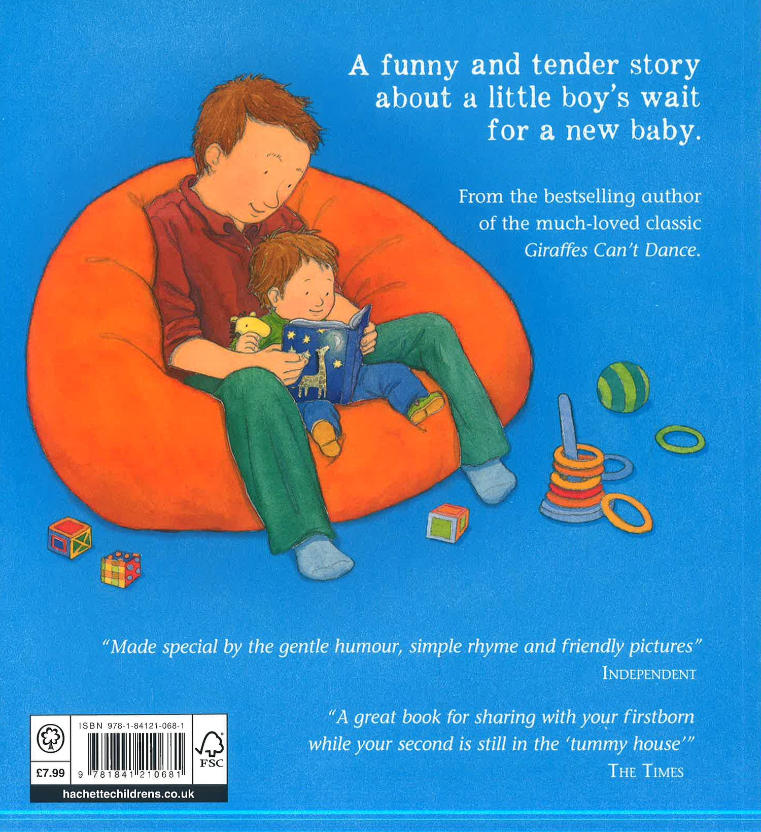 Waiting for a new brother or sister to arrive can be a confusing and worrying time for young children. Sharing this simple rhyming story together is the perfect way to reassure your little one and involve them in all the excitement. Told with humour and warmth by Giles Andreae, the author of much-loved family favourite Giraffes Can't Dance.