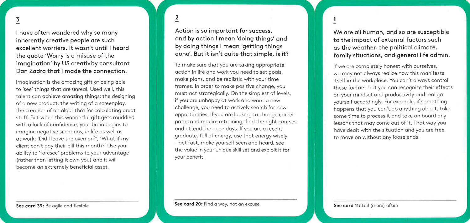 This new series of self-help cards begins with advice on how to improve your working life. Feeling unfulfilled in your present job? Want to make the most out of your creativity but don't know how? Not sure where to go next? The cards offer 50 pieces of bite-sized but practical advice by an expert in the field. Get the cards and get your career back on track!