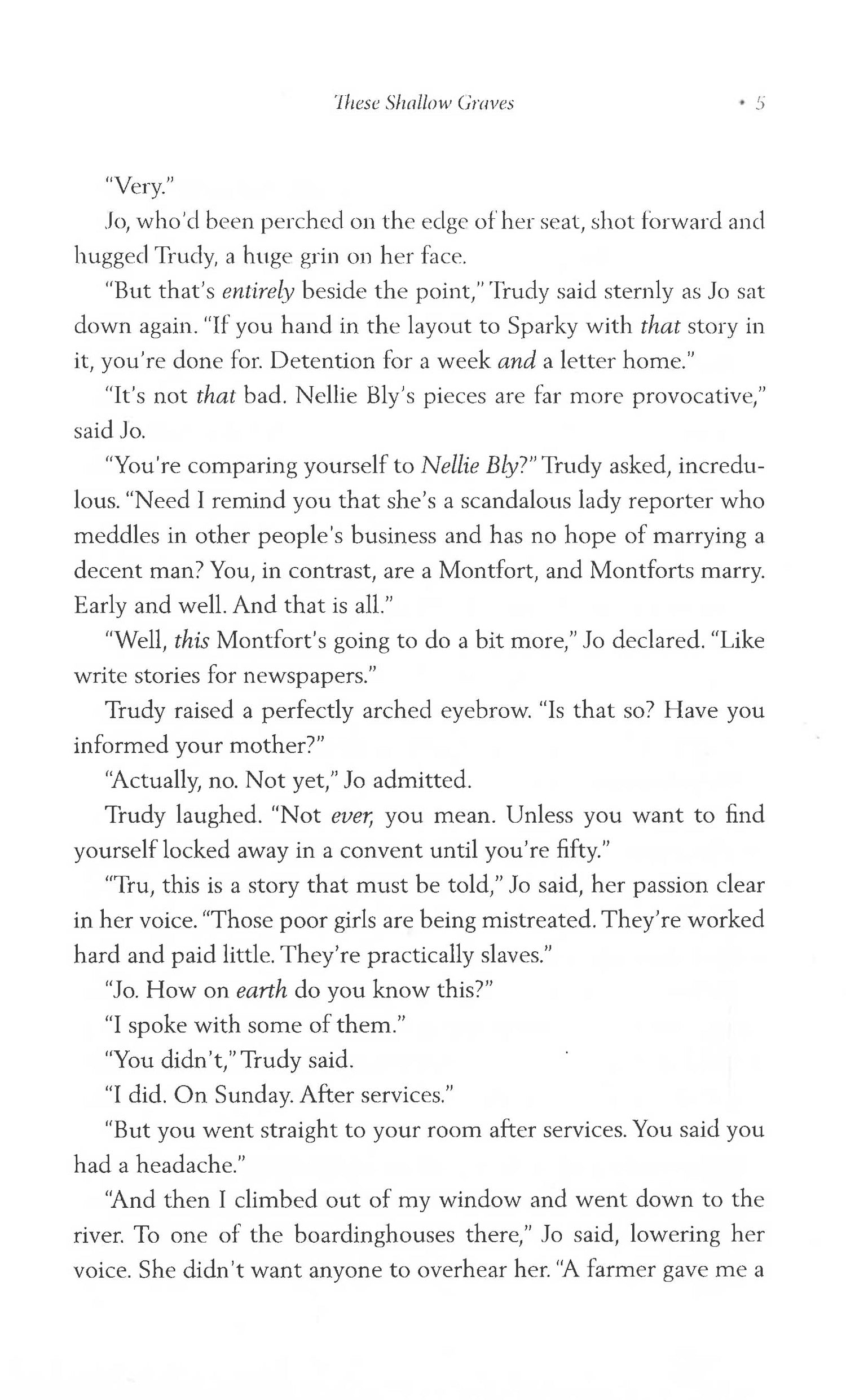 A wealthy family. A deadly secret. A young woman with more to lose than she knows. Josephine Montfort is from one of New York's oldest, most respected, and wealthiest families. Like most well-off girls of the Gilded Age, her future looks set - after a finishing school education, she will be favourably married off to a handsome gentleman, after which she'll want for nothing. But Jo has other dreams and desires that make her long for a very different kind of future. She wants a more meaningful and exciting life: she wants to be an investigative journalist like her heroine Nellie Bly. But when Jo's father is found dead in his study after an alleged accident, her life becomes far more exciting than even Jo would wish. Unable to accept that her father could have been so careless, she begins to investigate his death with the help of a young reporter, Eddie Gallagher. It quickly becomes clear he was murdered, and in their race against time to discover the culprit and his motive, Jo and Eddie find themselves not only battling dark characters on the violent and gritty streets of New York, but also their growing feelings for each other.