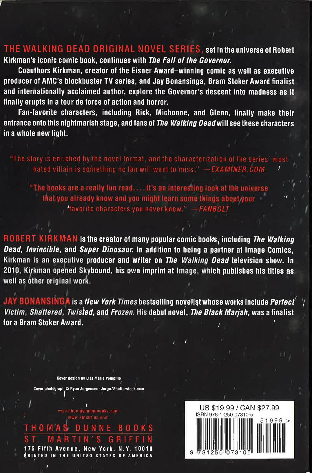 The epic finale to Robert Kirkman and Jay Bonansinga's New York Times bestselling Governor storyline! The Walking Dead original novel series, set in the universe of Robert Kirkman's iconic comic book, continues with The Fall of the Governor. From co-authors Kirkman, creator of the Eisner Award-winning comic as well as executive producer of AMC's blockbuster TV series, and Jay Bonansinga, Stoker Award-finalist and internationally acclaimed author, comes the gripping third novel in this richly woven, page-turning literary saga, which began with The Walking Dead: Rise of the Governor. In Rise of the Governor, uber-villain Philip Blake journeyed from his humble beginnings directly into the dark heart of the zombie apocalypse, and became the self-proclaimed leader of a small town called Woodbury. In The Road to Woodbury, an innocent traveler named Lilly Caul wound up in the terrifying thrall of Phillip Blakes twisted, violent dictatorship within Woodburys ever tightening barricades. And now, in The Fall of the Governor, the Governors descent into madness finally erupts in a tour de force of action and horror. Beloved characters from the comic book, including Rick, Michonne, and Glenn, finally make their entrance onto this nightmarish stage, and fans of The Walking Dead will see these characters in a whole new light. Simmering grudges boil over into unthinkable confrontations, battle lines are drawn, and unexpected twists seal the fates of the innocent and guilty alike.
