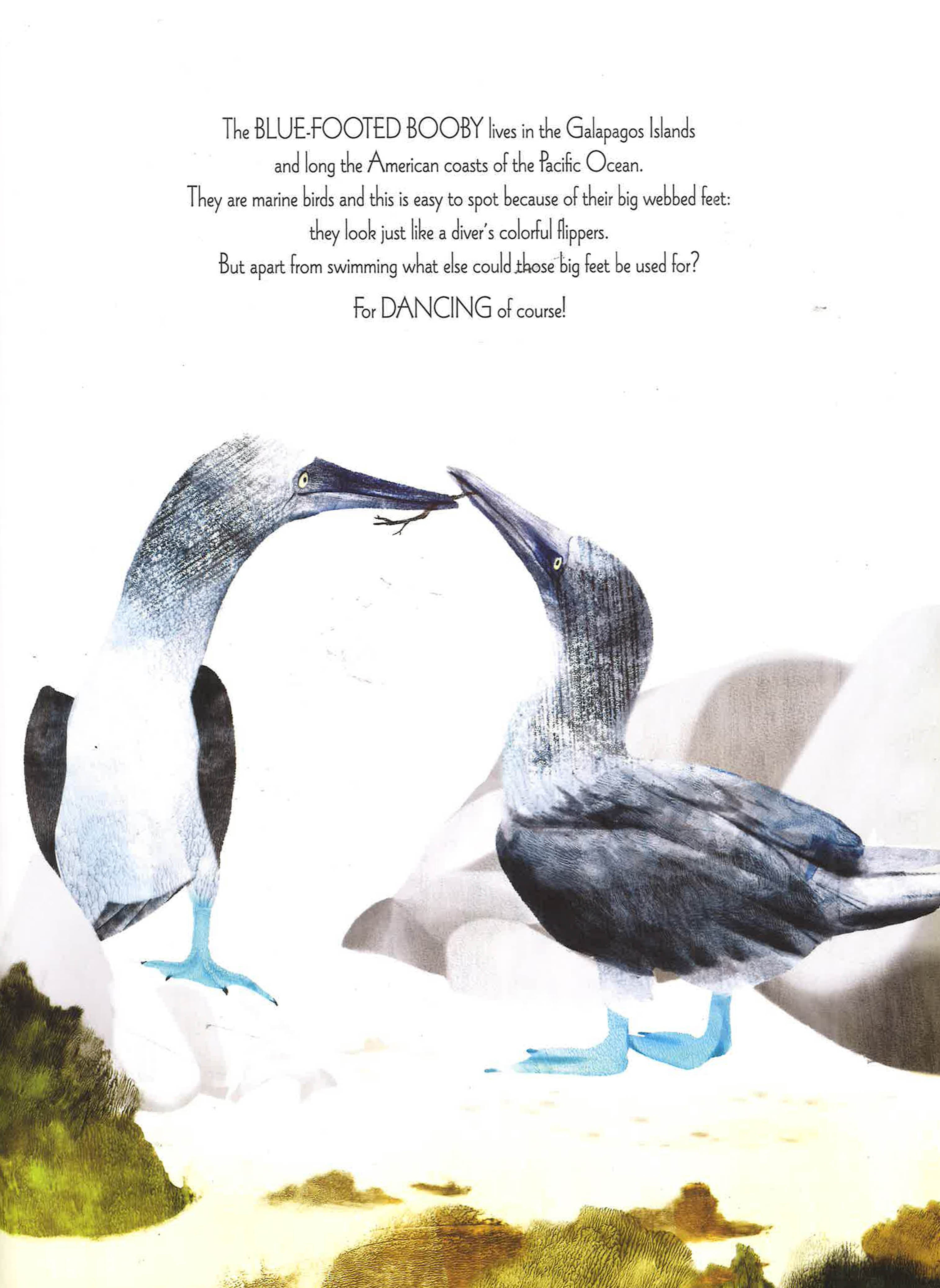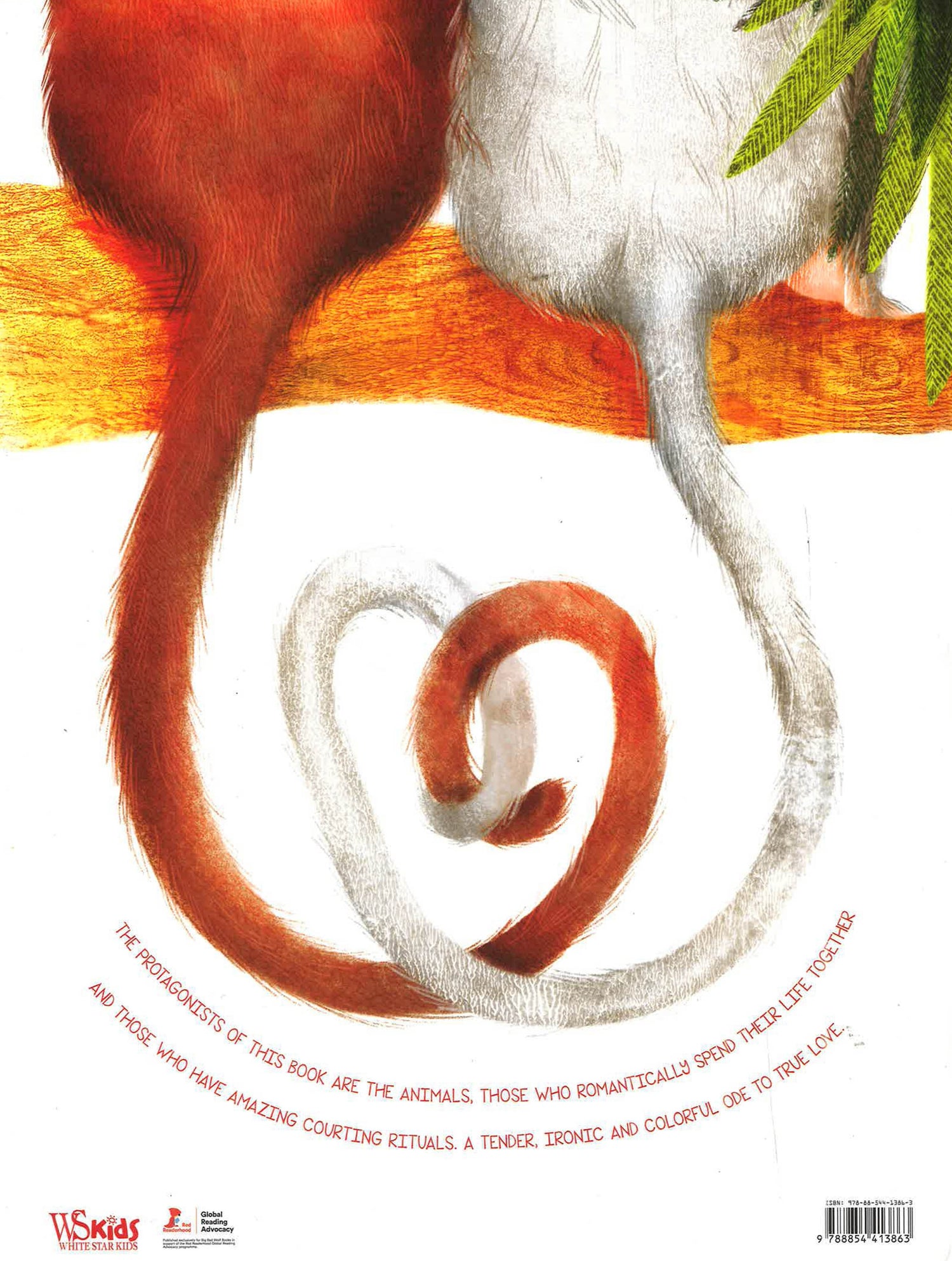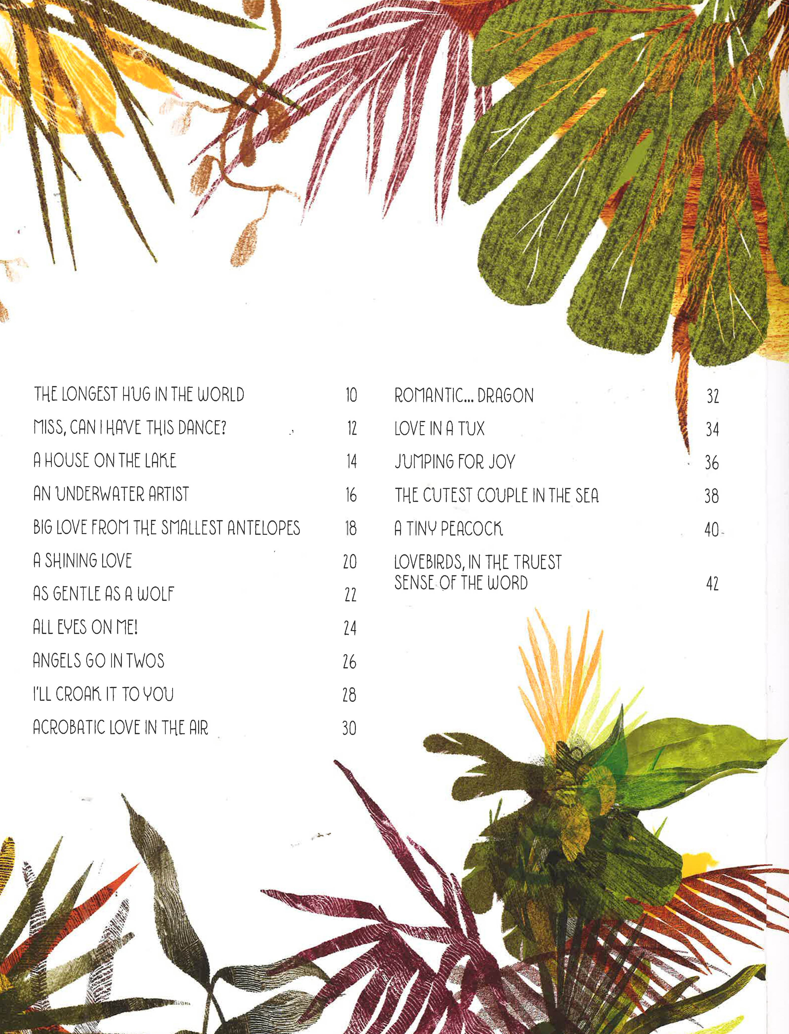 This book is a collection of love stories starring romantically monogamous animals like wolves, eagles, lovebirds and penguins. There are also the stories of animals whose courting rituals are surprisingly creative, like the dance of the blue-footed booby or the synchronous flashing of fireflies. The result is truly an ode to love, tender and ironic, fun and colourful, thanks to the stunning images created by Isabella Grott.