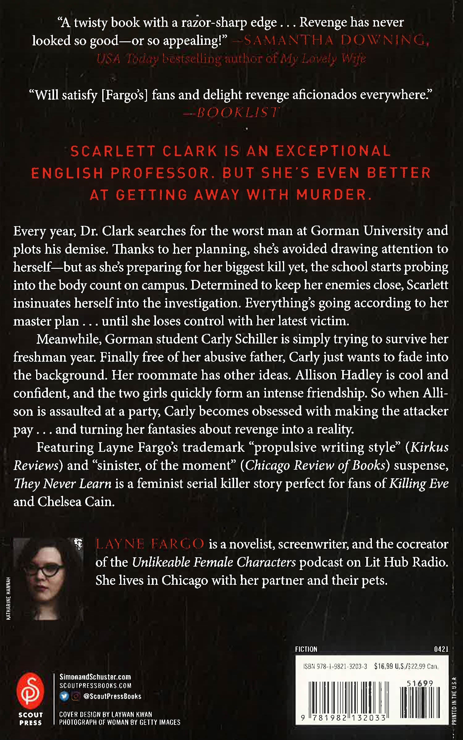 “A gorgeously-written ragestorm of a thriller” (Wendy Heard, author of The Kill Club), They Never Learn is a feminist serial killer story that you won’t be able to put down.