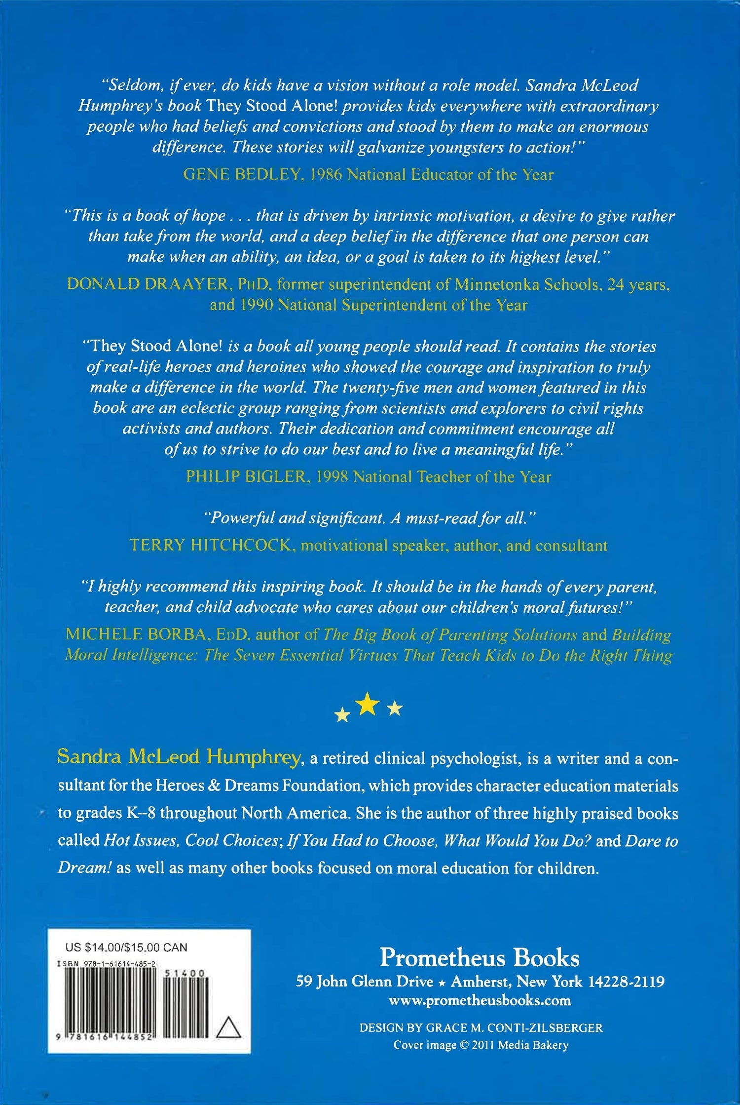 Nicolaus Copernicus and Elizabeth Cady Stanton are just two of the twenty-five extraordinary men and women whom you will have a chance to meet in this inspiring book that explores and celebrates people who had the courage to follow their own convictions, even when everyone around them said they were wrong. They were people of vision who saw life from a new perspective and were willing to question conventional wisdom. And their revolutionary breakthroughs changed and shaped the course of history. Author Sandra McLeod Humphrey invites you to have the courage to stand alone too, hold on to your dreams, and follow your heart wherever it may lead. Like the twenty-five pioneers who lived before you, you too may someday make a difference.