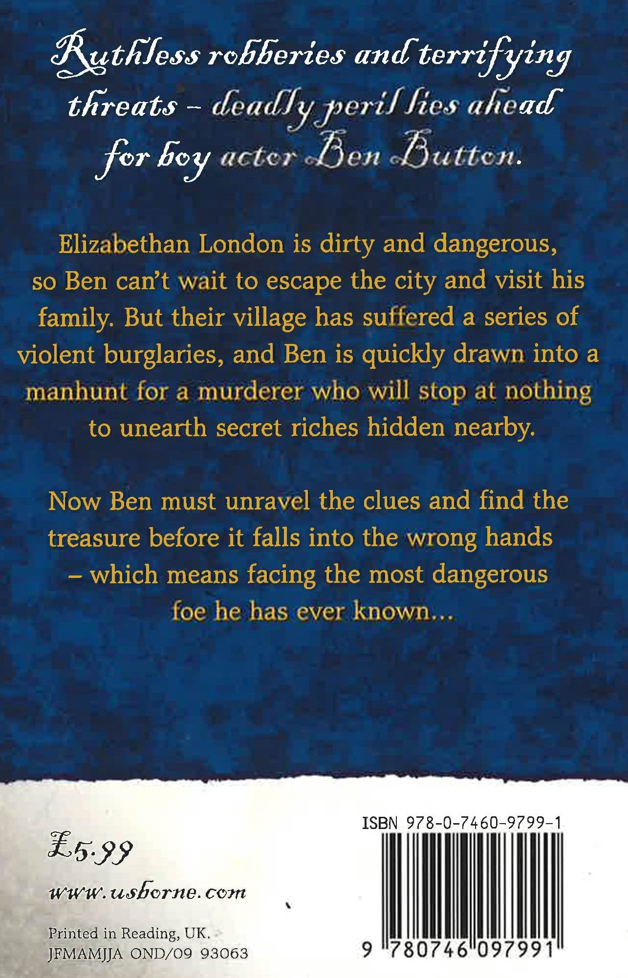 This title is the fourth in the series of rip-roaring historical mysteries set in the cut-throat world of Elizabethan England. Boy-actor Ben Button is looking forward to leaving the chaos of London for a quiet visit to his family in rural Hornsey. But all is not right at home; the village has suffered a series of vicious robberies and Ben's granny is acting strangely...like she's hiding something. But it isn't until Ben learns that Daniel Cutter - Hornsey's most feared thief - has been released from prison, that he discovers his grandmother is hiding someone...Cutter himself. When his granny's house is ransacked by a ruthless stranger searching for Cutter, Ben is drawn into a manhunt for a merciless criminal who will stop at nothing until he finds a mysterious treasure concealed somewhere in the village - a treasure to which only Cutter knows the whereabouts. Readers will be gripped by this thrilling mystery, riddled with cunning clues and hidden secrets, set in the colourful and exhilarating world of Tudor England.
