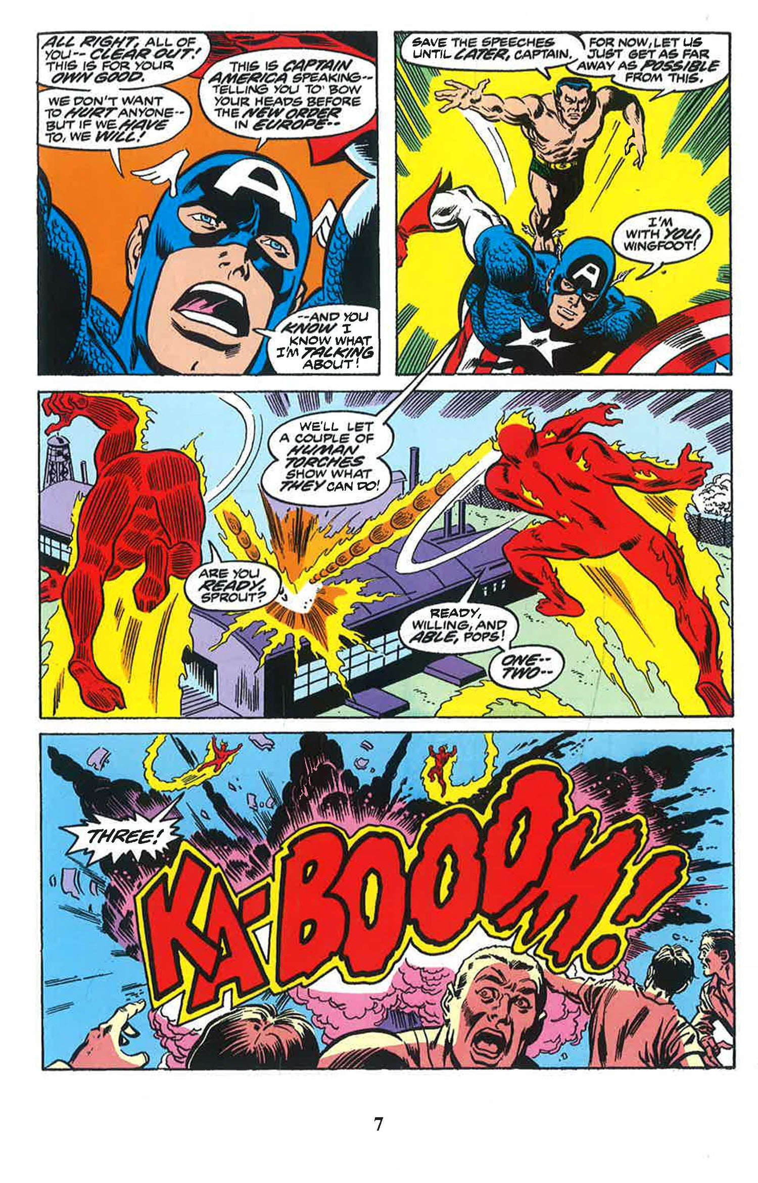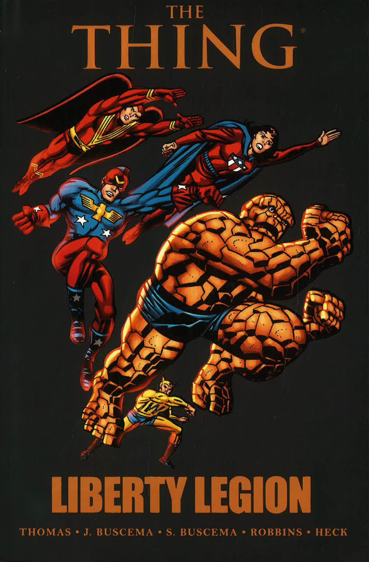 Move over Invaders: it's the Liberty Legion, America's home-front super heroes of World War II! Miss America! The Whizzer! Thin Man! Red Raven! And more! But when things get tough, they may need some help from the future in the form of the Thing and the Fantastic Four! When Nazis threaten to rule the world, the heroes scramble to save the day! Featuring the villainy of the Red Skull, Brain Drain, U-Man and more!