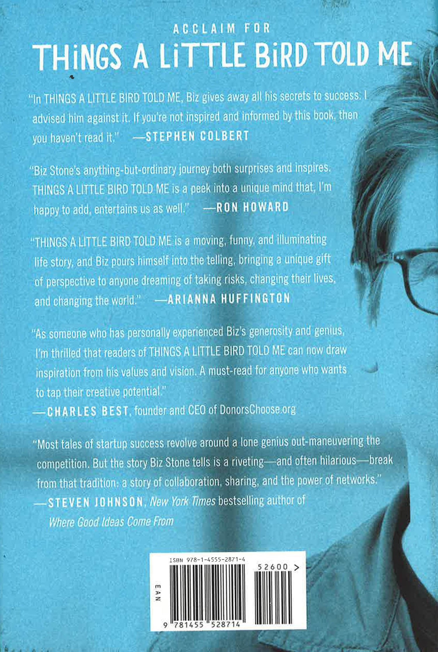 Biz Stone, the co-founder of Twitter, discusses the power of creativity and how to harness it, through stories from his remarkable life and career. THINGS A LITTLE BIRD TOLD ME From GQ's "Nerd of the Year" to one of Time's most influential people in the world, Biz Stone represents different things to different people. But he is known to all as the creative, effervescent, funny, charmingly positive and remarkably savvy co-founder of Twitter-the social media platform that singlehandedly changed the way the world works. Now, Biz tells fascinating, pivotal, and personal stories from his early life and his careers at Google and Twitter, sharing his knowledge about the nature and importance of ingenuity today. In Biz's world: -Opportunity can be manufactured -Great work comes from abandoning a linear way of thinking -Creativity never runs out -Asking questions is free -Empathy is core to personal and global success In this book, Biz also addresses failure, the value of vulnerability, ambition, and corporate culture. Whether seeking behind-the-scenes stories, advice, or wisdom and principles from one of the most successful businessmen of the new century, THINGS A LITTLE BIRD TOLD ME will satisfy every reader.