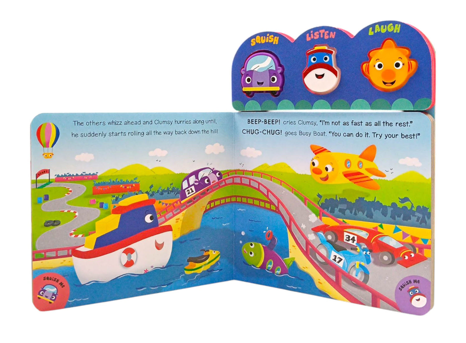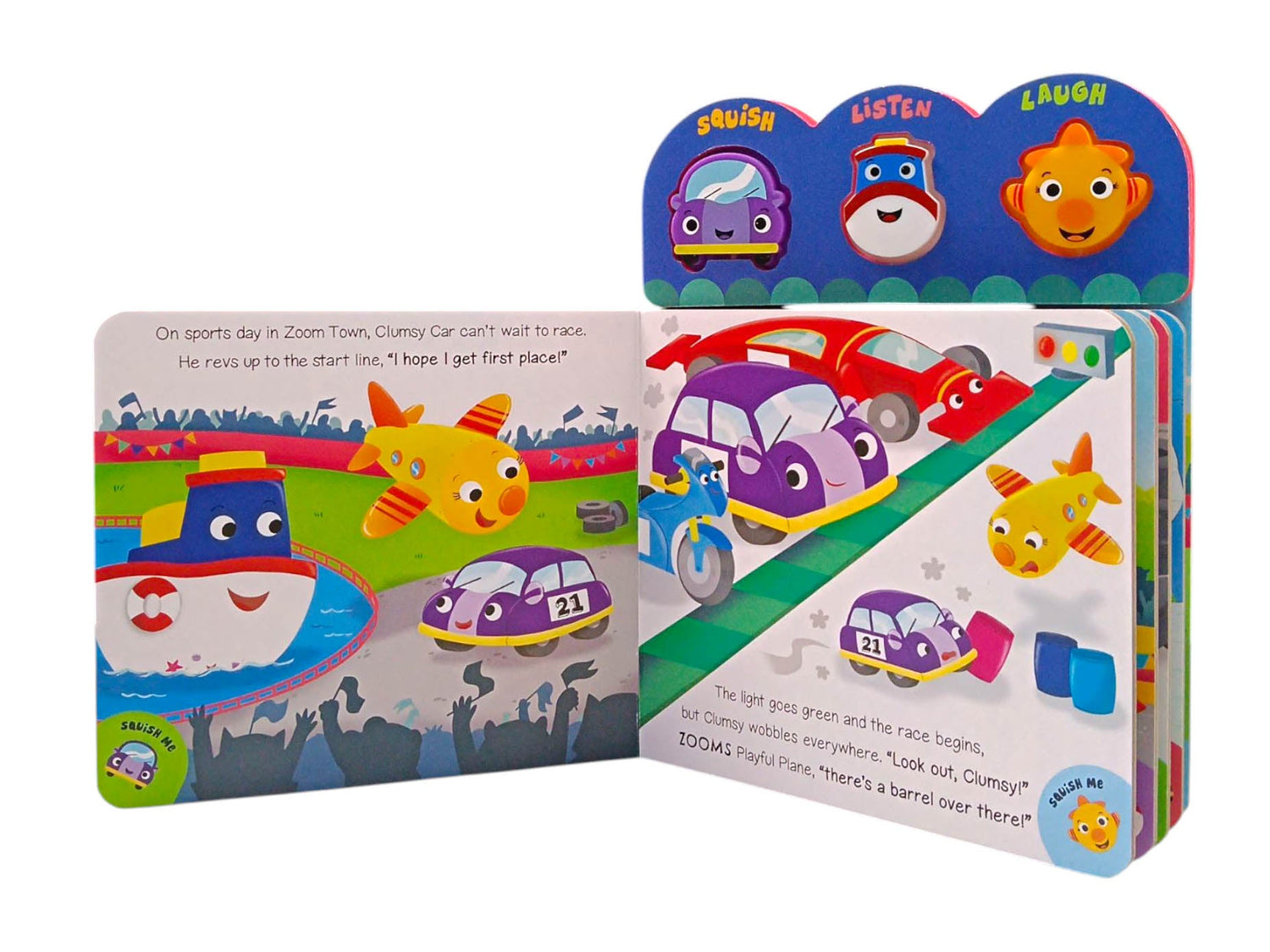 Squish, listen and laugh with this funny, interactive sound book. Read along with the story, squish the buttons and listen to the sounds in Things That Go