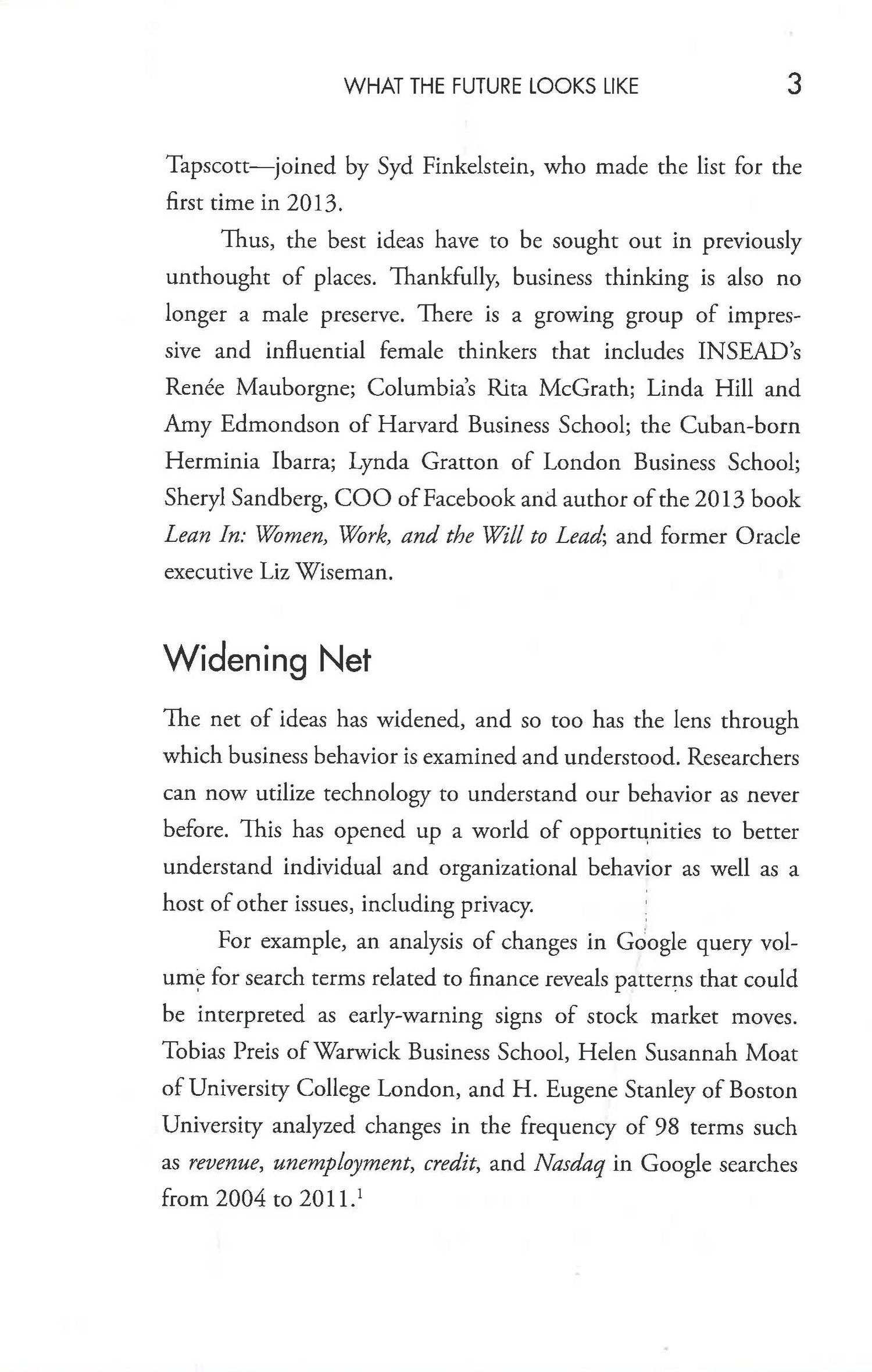 The World's Leading Business Minds on Today's Most Critical ChallengesThe most innovative ideas from the rising stars on the Thinkers50 Guru Radar Globalization, increasing competition, and the rapid pace of innovation are changing business best practices faster and faster. If you havelong-term success in mind, you need to stay a step ahead of the competition.Creators of Thinkers50--the world's most respected ranking of business thinkers--Des Dearlove and Stuart Crainer bring you the very latest thinking on the future of business.Thinkers50 Future Thinkers reveals groundbreaking ideas from Thinkers50 Future Thinker award winner Nilofer Merchant; Monika Hamori, professor at Spain's IE Business School; groundbreaking leadership thinker Gianpiero Petriglieri; the cocreator of Jugaad Innovation, Navi Radjou; as well as bestselling authorsAdam Grant, James Allworth, and Dorie Clark. Chapters include:What the Future Looks LikeThe Reinvention of LeadershipUnderstanding OrganizationsUnderstanding Working LifeInnovation NowSustaining the FutureEach book in the Thinkers50 series provides authoritative explanations of the concepts, ideas, and practices that are making a difference today, including specific examples and cases drawn from the original sources."If management is a technology, then getting the next update early can be a competitive advantage," the authors write. "And where better to look for the next big idea than to the thinkers of the future?"Business success is no longer a result of finding the most effective way of doing things and sticking with it. The only best practice guaranteed to work is this: embrace change. Read Thinkers50 Future Thinkers and learn how to apply the best ideas from the brightest minds inthe business world today.The first-ever global ranking of management thought leaders, Thinkers50 is the most prestigious and influential listing of its kind. Created in 2001 by Stuart Crainer and Des Dearlove, Thinkers50 has broadened its impact to include identifying, ranking, and sharing the best management thinking in the world.Today, Thinkers50 is recognized as the world's definitive ranking of the top 50 business thinkers, and the Thinkers50 Distinguished Achievement Awards are widely regarded as the "Oscars of management thinking."Now, the ideas and insights of the world's top business figures are right at your fingertips. The Thinkers50 series culls the best of the very best, delivering the latest concepts and theories on today's most important management issues--from leadership to strategy to innovation.The world's leading independent authority on management ideas, Thinkers50 reveals the ideas that are now shaping the world of business. Stay ahead of the game--and the competition--with the Thinkers50 series.