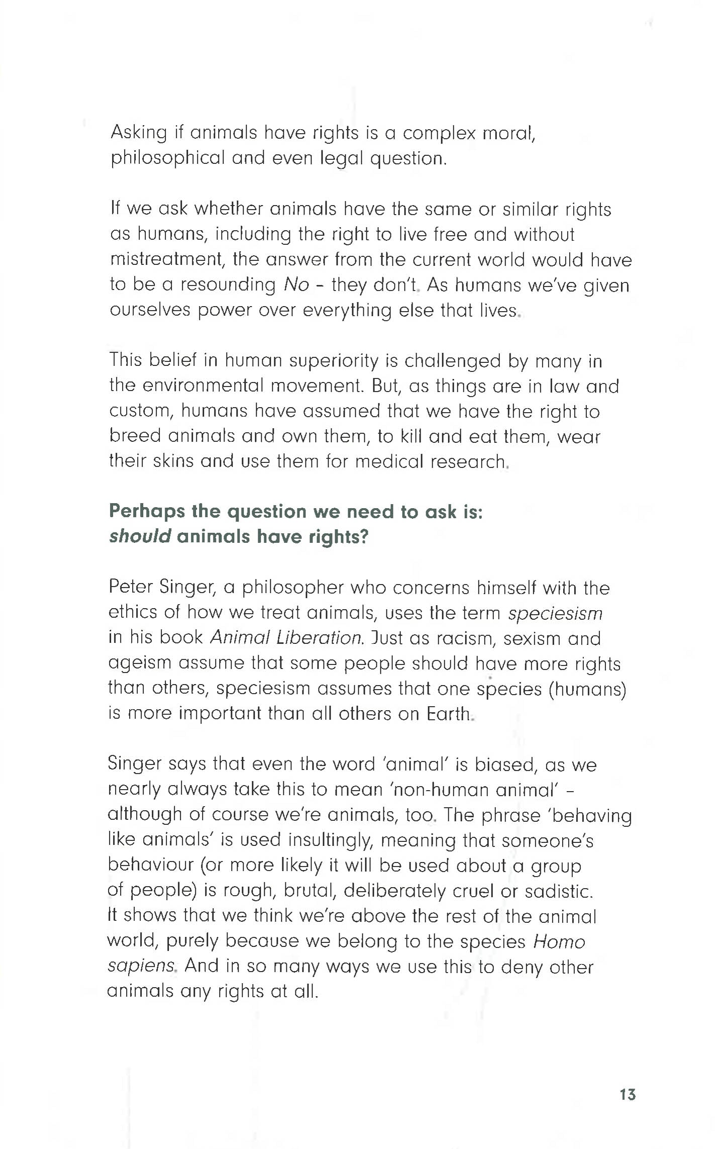 It's a guide for older children and teenagers concerned about animals, wildlife and the planet we live on.