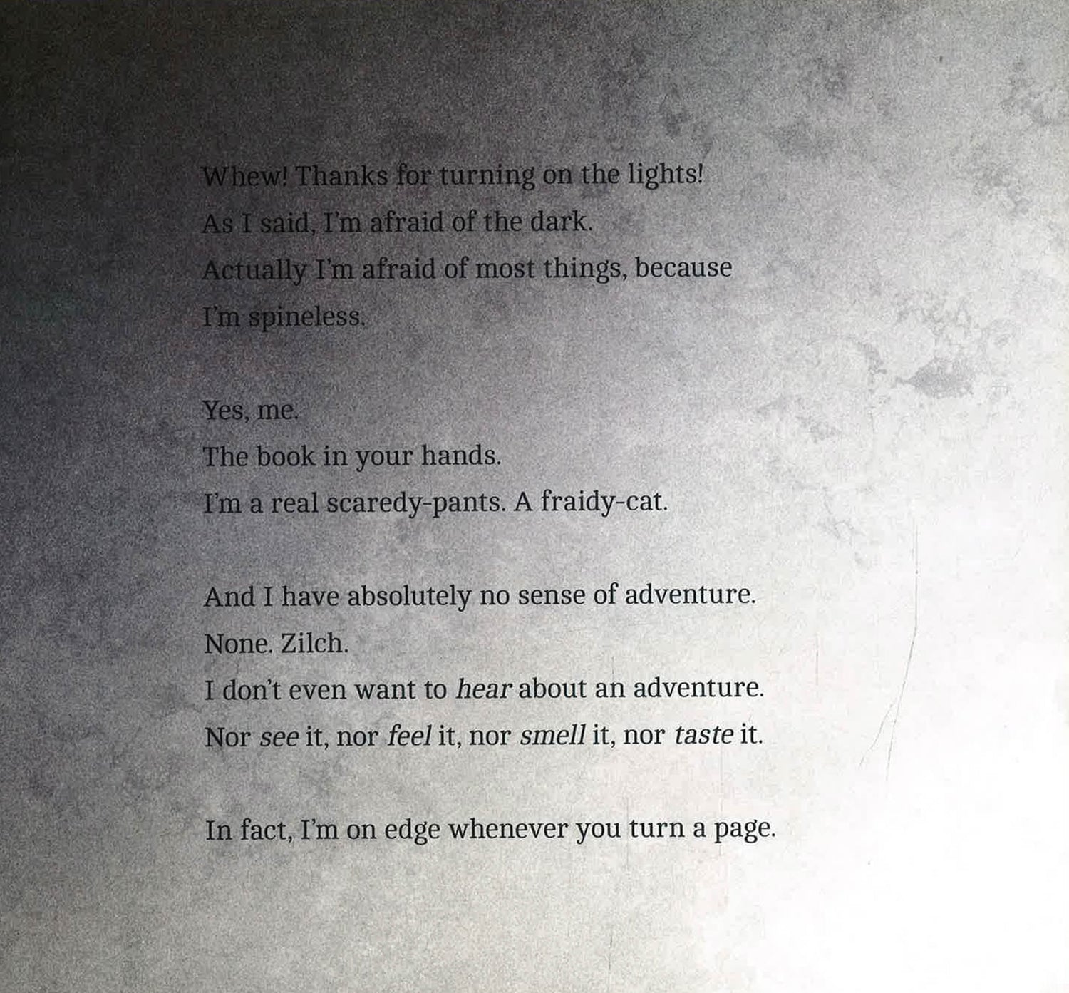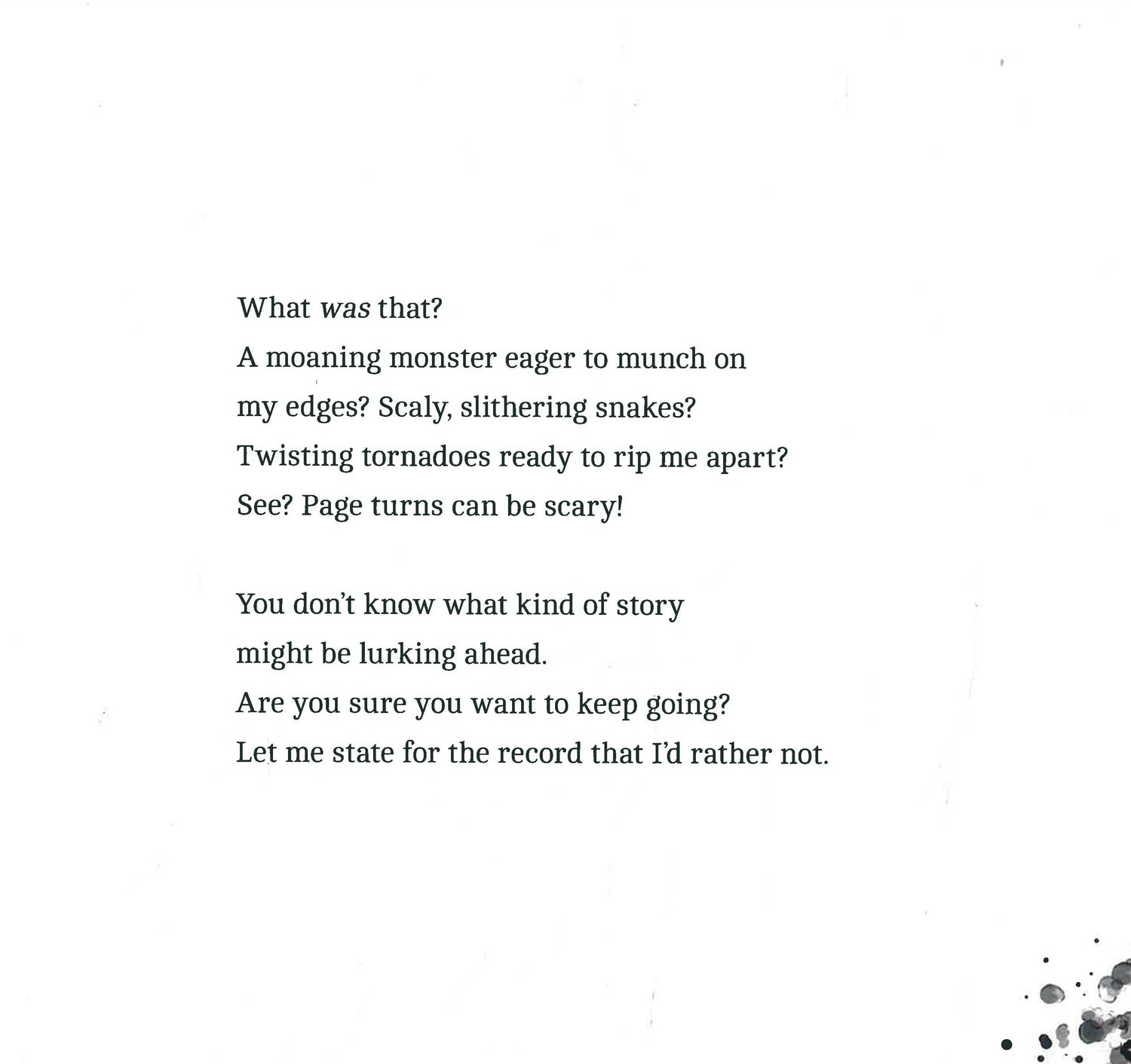 Does it hear spooky wails from a ghost story? Can it see a mysterious something peeking around a corner? Is that the dizzy feeling of zero gravity it senses? Might that be the stinky smell of animals in nature it detects? Could it be tasting the saltiness of a story on the high seas? The reader and book navigate the book’s contents together, becoming friends as the book becomes braver with every page turn. This multilayered book incorporates the five senses, multiple literary genres, and various book parts, with the relationship between book and reader bringing everything together.