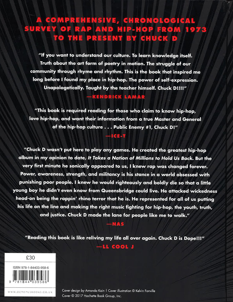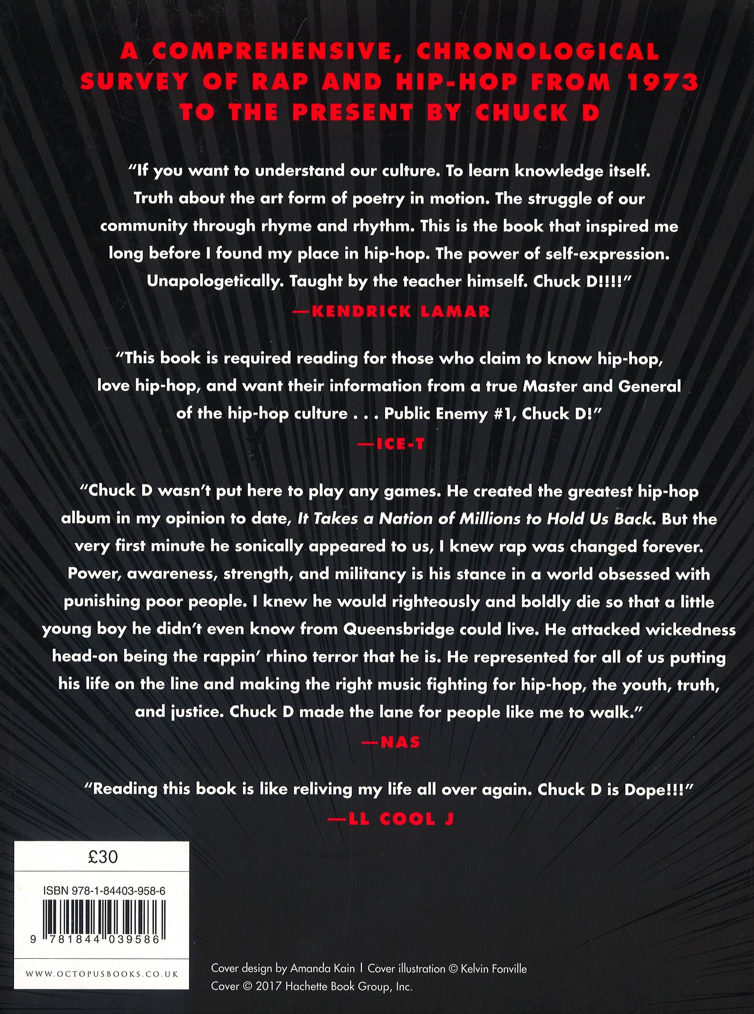 Foreword by Shepard Fairey.As featured in Best stocking-filler books of 2017 - The GuardianIf you want to understand our culture. To learn knowledge itself. Truth about the art form of poetry in motion. The struggle of our community through rhyme and rhythm. This is the book that inspired me long before I found my place in hip-hop. The power of self-expression. Unapologetically. Taught by the teacher himself. Chuck D!!!Kendrick LamarThis book is required reading for those who claim to know hip-hop, love hip-hop, and want their information from a true Master and General of the hip-hop culture...Public Enemy #1, Chuck D!Ice-TChuck D wasn't put here to play any games. He created the greatest hip-hop album in my opinion to date, It Takes a Nation of Millions to Hold Us Back. But the very first minute he sonically appeared to us, I knew rap was changed forever. Power, awareness, strength, and militancy is his stance in a world obsessed with punishing poor people. I knew he would righteously and boldly die so that a little young boy he didn't even know from Queensbridge could live. He attacked wickedness head-on being the rappin' rhino terror that he is. He represented for all of us putting his life on the line and making the right music fighting for hip hop, the youth, truth, and justice. Chuck D made the lane for people like me to walk.NasReading this book is like reliving my life all over again. Chuck D is Dope!!!LL Cool JIn the more than 40 years since the days of DJ Kool Herc and "Rapper's Delight," hip-hop and rap have become a billion-pound worldwide cultural phenomenon that reaches well beyond music, into fashion, movies, art and politics. Yet there is no definitive history of the genre - until now.This massive compendium details the most iconic moments and influential songs in the genre's recorded history, from Kurtis Blow's "Christmas Rappin'" to The Miseducation of Lauryn Hill to Kendrick Lamar's verse on "Control." Also included are key events in hip-hop history, from Grandmaster Flash's first scratch through to Tupac's holographicappearance at Coachella.Throughout the book, Chuck offers an insider's perspective on the chart toppers, artists and key moments. Illustrating the pages are more than 150 portraits from mADurgency, an artist collective specialising in art and design for the hip-hop community.
