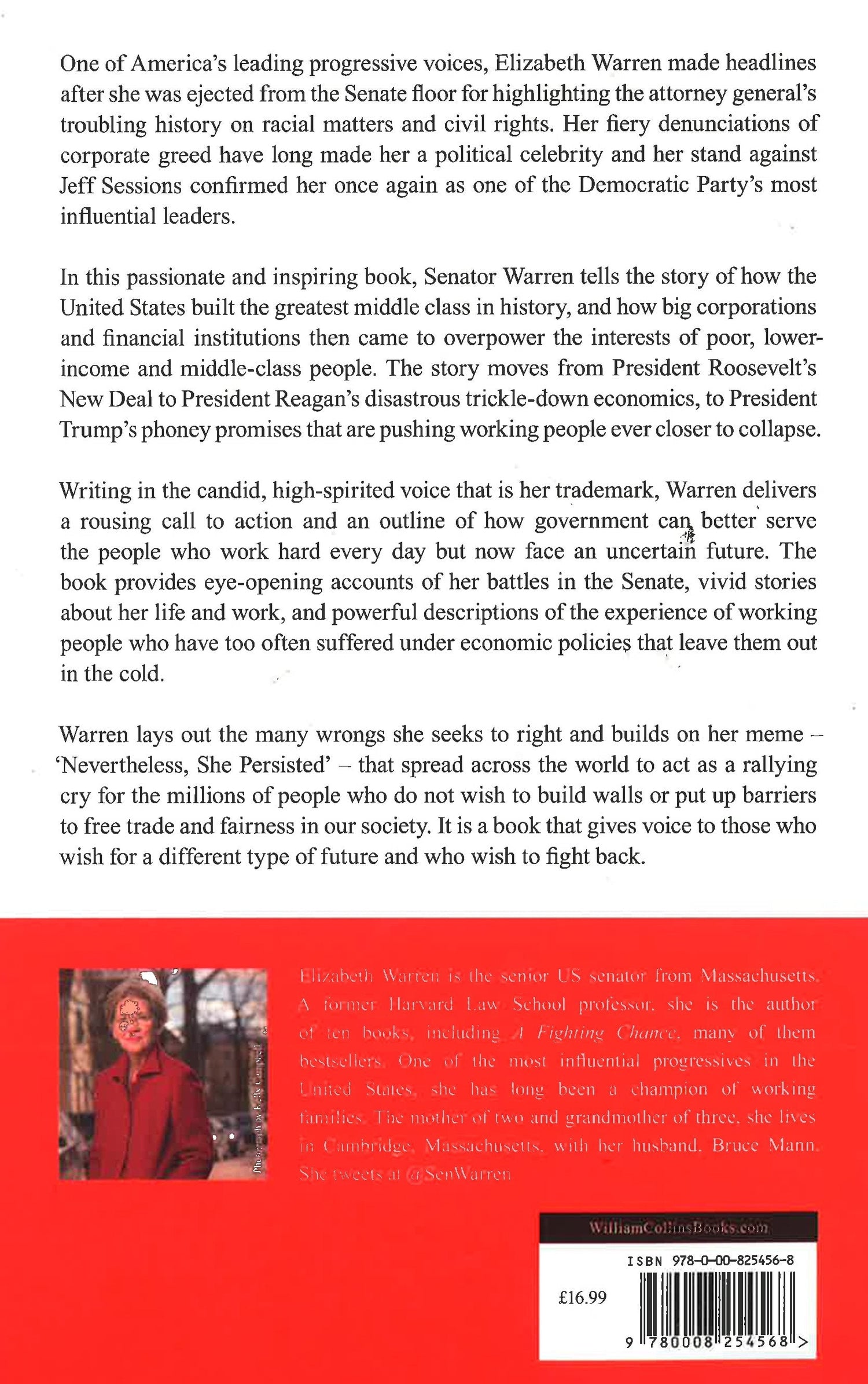 Nevertheless, she persisted' has become a rallying cry for millions of those fed up with phony promises and governments that no longer serve their people. In this inspiring #1 New York Times bestseller and inspiring book, U.S. Senator Elizabeth Warren argues for a fair future for ordinary working people. Join the fight! In this passionate book, one of America's leading progressive voices empowers those who wish for a fairer society. This Fight Is Our Fight lays out the many wrongs Democrat Senator Elizabeth Warren seeks to right and builds on her meme, 'Nevertheless, she persisted', which spread across the world as a rallying cry for the millions who wish to fight back. From Roosevelt's New Deal through to President Trump's phoney promises, this is a sharp critique of how big corporations and financial institutions overpowered the interests of poor, lower-income and middle-class people.Writing in her trademark candid, high-spirited voice, Warren delivers a rousing call to action, outlining how government can better serve the people who now face an uncertain future. A must read for those who want a more inclusive society.
