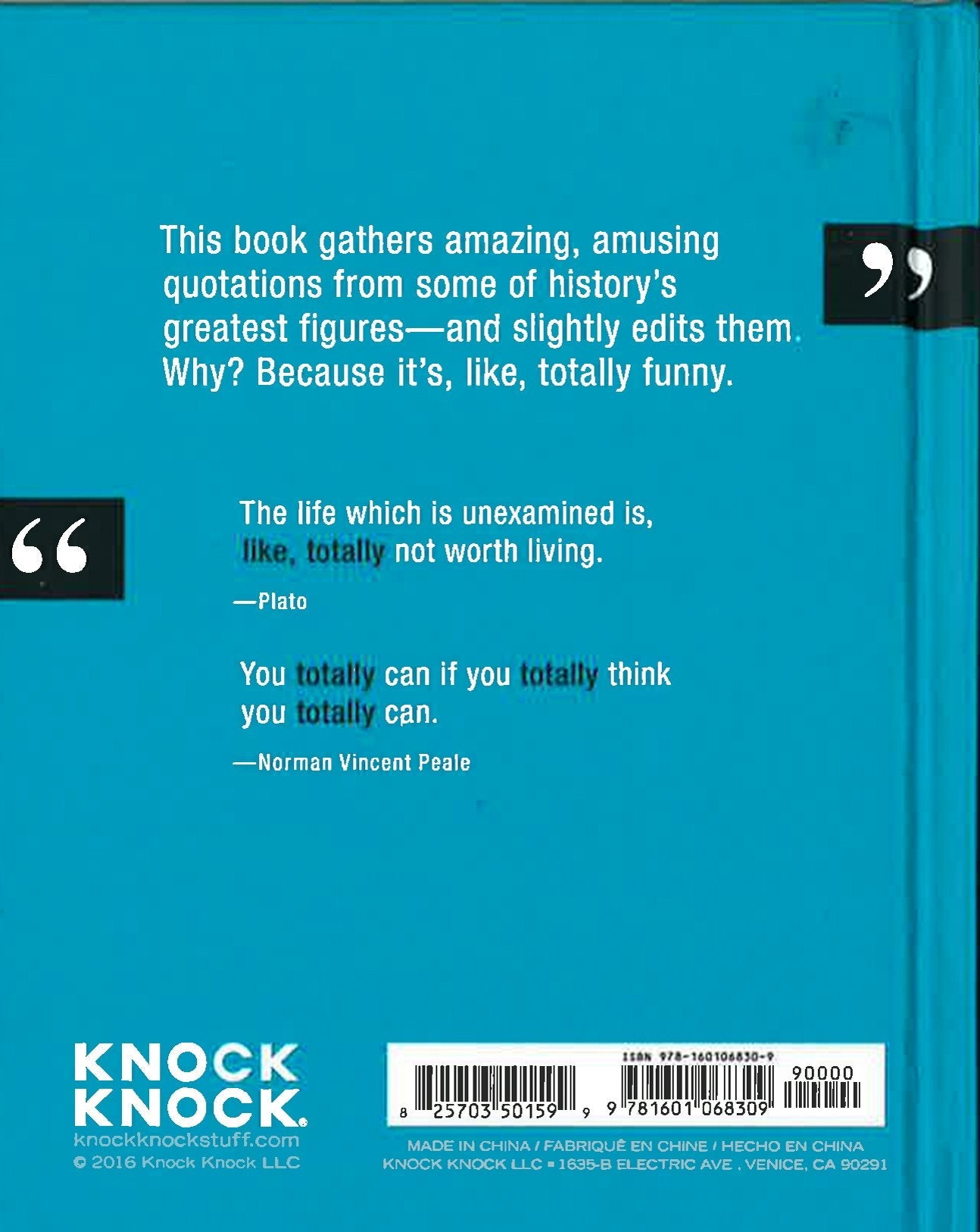 This witty book gathers amazing, amusing quotations from some of history's greatest figures and adds "like, totally" to them. Sometimes it's poetic or even poignant. But mostly it's like, totally funny.