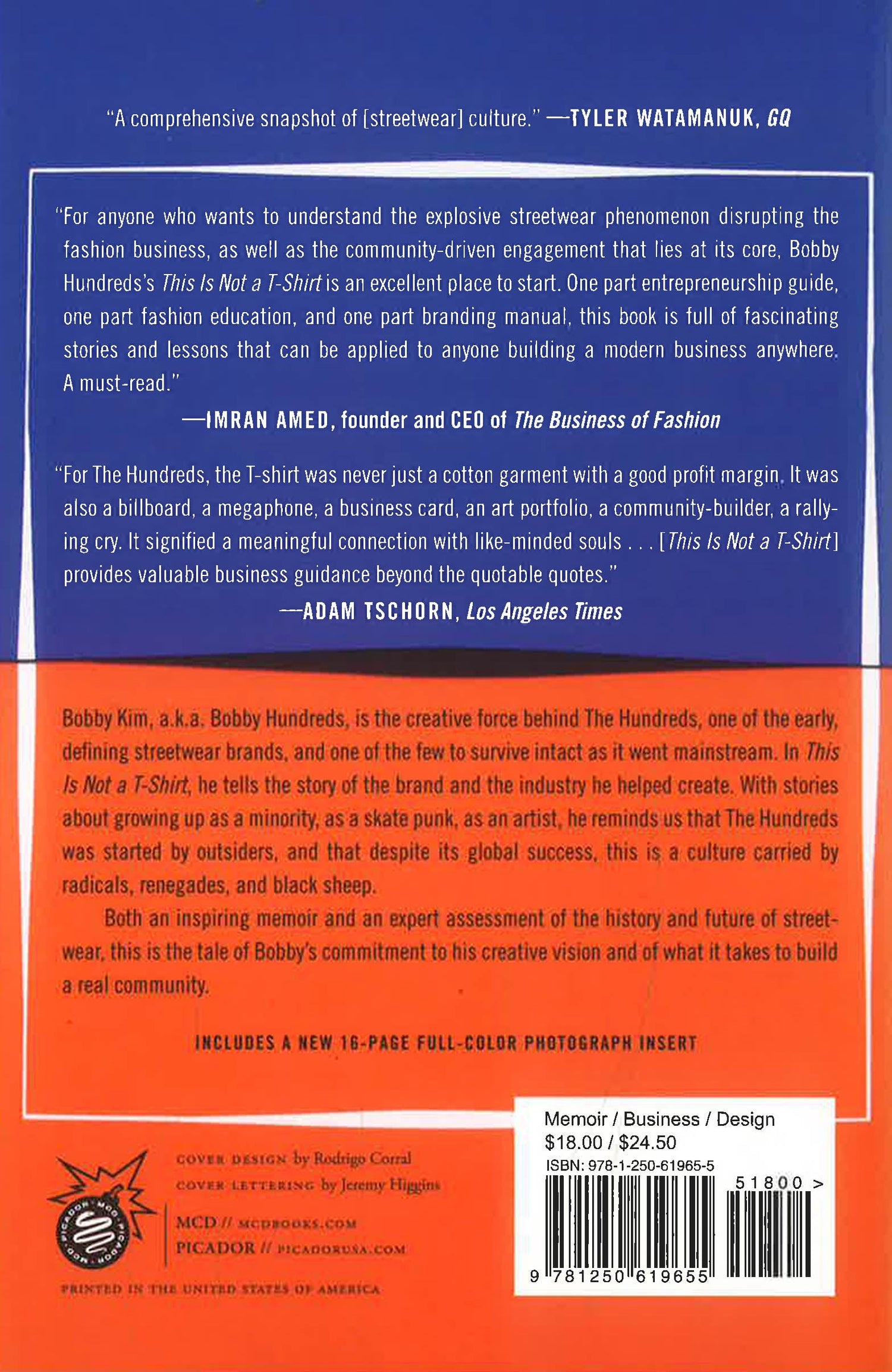 The story of The Hundreds and the precepts that made it an iconic streetwear brand by Bobby Hundreds himself Streetwear occupies that rarefied space where genuine "cool" coexists with big business; where a star designer might work concurrently with Nike, a tattoo artist, Louis Vuitton, and a skateboard company. It's the ubiquitous style of dress comprising hoodies, sneakers, and T-shirts. In the beginning, a few brands defined this style; fewer still survived as streetwear went mainstream. They are the OGs, the "heritage brands." The Hundreds is one of those persevering companies, and Bobby Hundreds is at the center of it all. The creative force behind the brand, Bobby Kim, a.k.a. Bobby Hundreds, has emerged as a prominent face and voice in streetwear. In telling the story of his formative years, he reminds us that The Hundreds was started by outsiders; and this is truly the story of streetwear culture. In This Is Not a T-Shirt, updated with a new introduction by the author plus a new 16-page full-color insert, Bobby Hundreds cements his spot as a champion of an industry he helped create and tells the story of The Hundreds--with anecdotes ranging from his Southern California, punk-DIY-tinged youth to the brand's explosive success. Both an inspiring memoir and an expert assessment of the history and future of streetwear, this is the tale of Bobby's commitment to his creative vision and to building a real community.