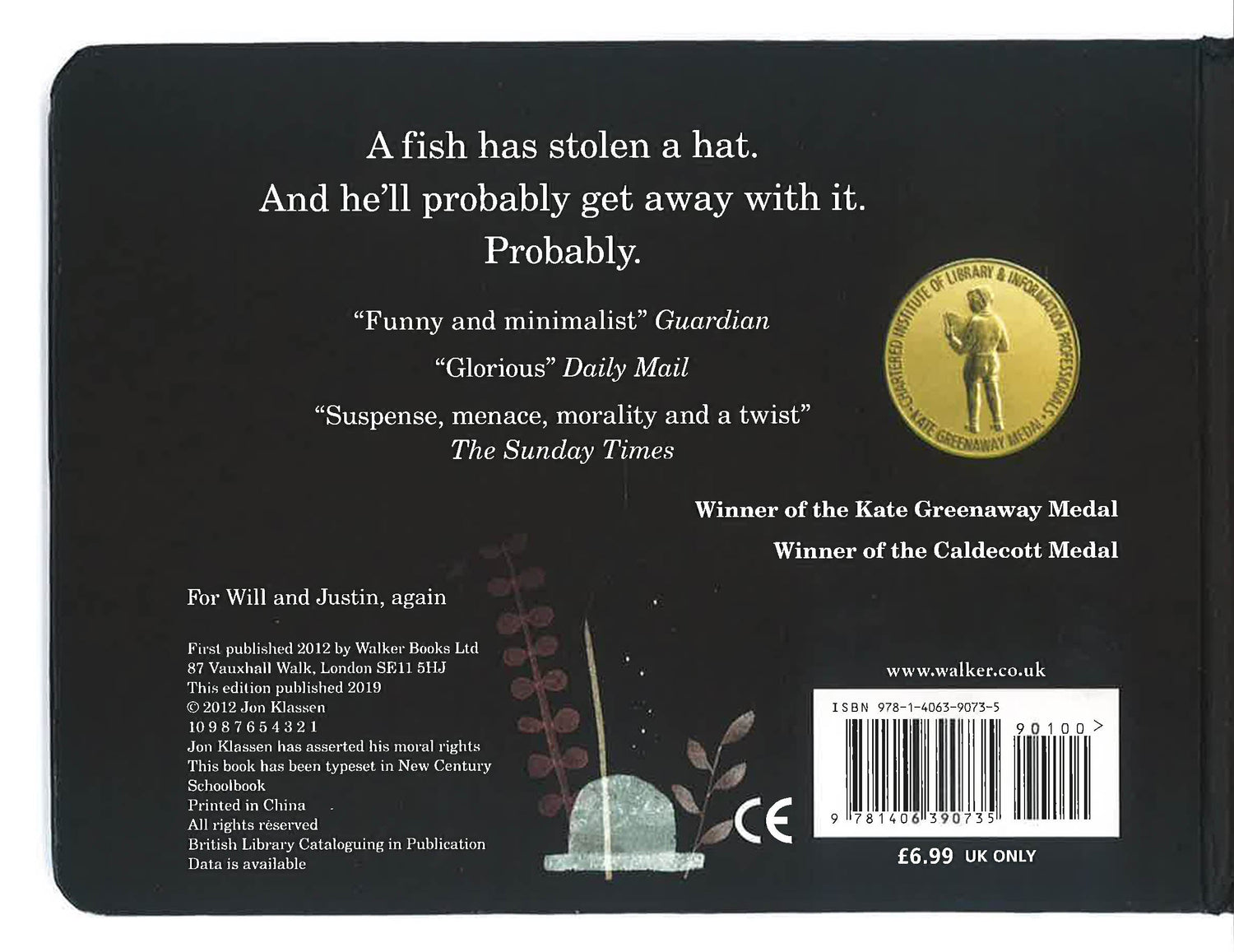 Winner of the Kate Greenaway MedalWinner of the Caldecott MedalA New York Times Bestseller "There is character and narrative drive, suspense, menace, morality and a twist" The Sunday TimesJon Klassen for the smallest hands! A board book edition of the bestselling, multiple award-winning cautionary tale.A tiny fish proudly wears a blue hat. It fits him perfectly. Problem is, trouble could be following close behind... So it's a good thing that the enormous fish he took it from won't wake up. And even if he does, it's not as though he'll ever know what happened, right?