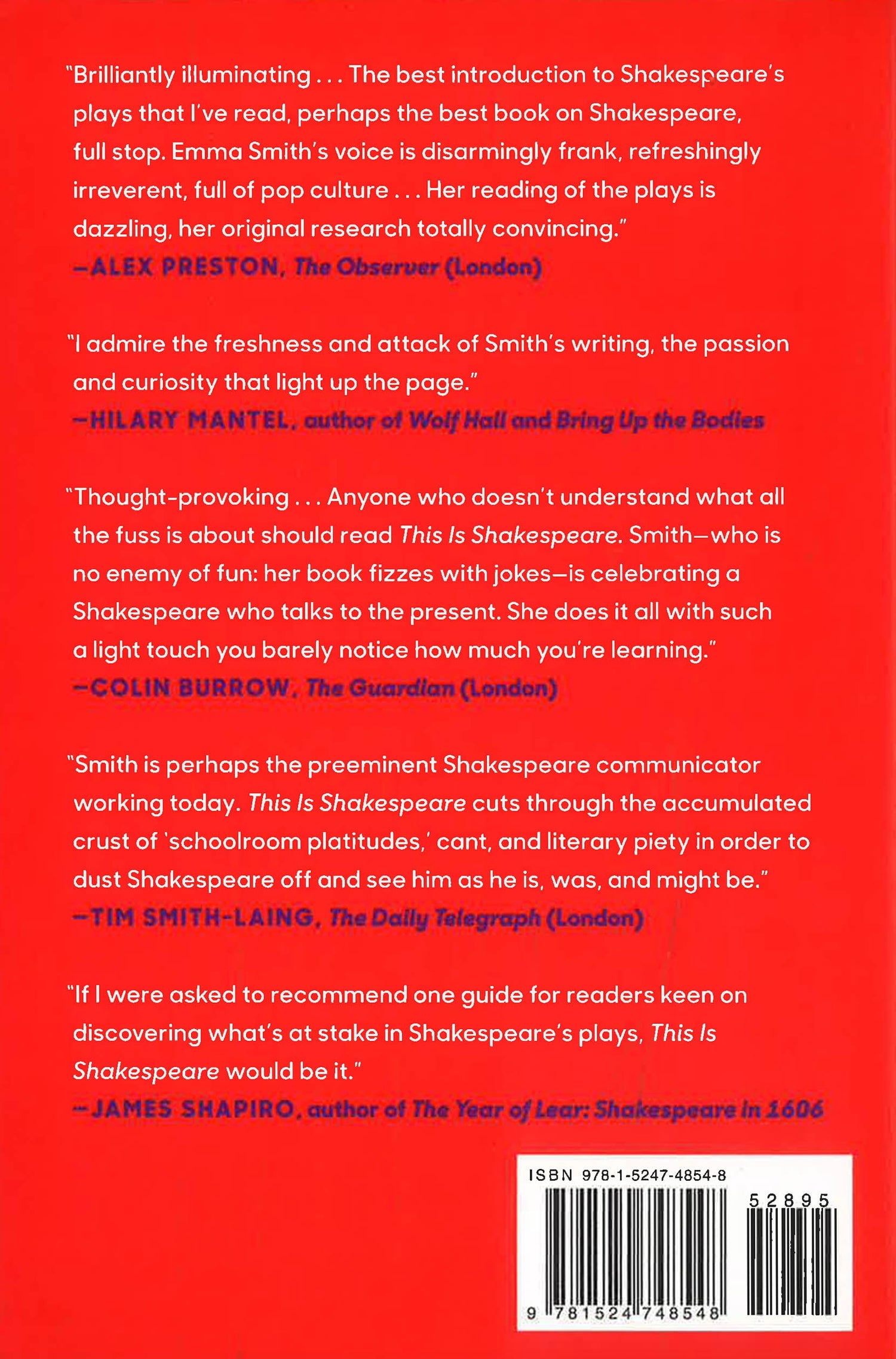A genius and prophet whose timeless works encapsulate the human condition like no others. A writer who surpassed his contemporaries in vision, originality, and literary mastery. A man who wrote like an angel, putting it all so much better than anyone else. Is this Shakespeare? Well, sort of. But it doesn't tell us the whole truth. So much of what we say about Shakespeare is either not true, or just not relevant. Now, Emma Smith--an intellectually, theatrically, and ethically exciting writer--takes us into a world of politicking and copycatting, as we watch Shakespeare emulating the blockbusters of Christopher Marlowe and Thomas Kyd, the Spielberg and Tarantino of their day; flirting with and skirting round the cutthroat issues of succession politics, religious upheaval, and technological change. Smith writes in strikingly modern ways about individual agency, privacy, politics, celebrity, and sex, and the Shakespeare she reveals in this book poses awkward questions rather than offering bland answers, always implicating us in working out what it might mean.