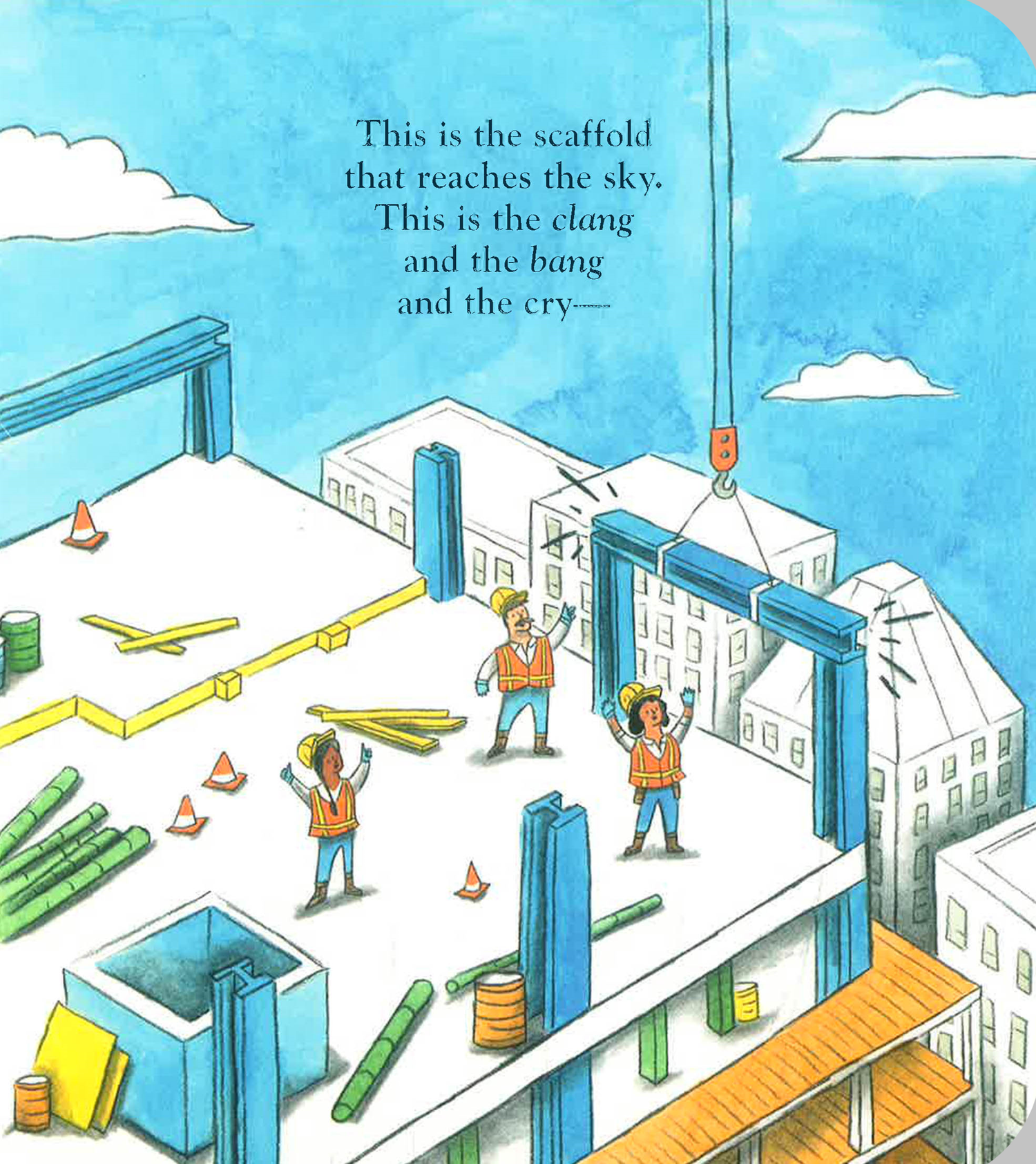 Young readers will delight in this step-by-step journey as a construction worker goes about her day on the job. With compelling details, vibrant color, and a driving rhythm, This is the Construction Worker builds up excitement as the high rise project in the illustrations grows taller and taller. Emphasizing teamwork and camaraderie, this story is a great read for home and the classroom, perfect for vehicle lovers and all young fans of busy activity!