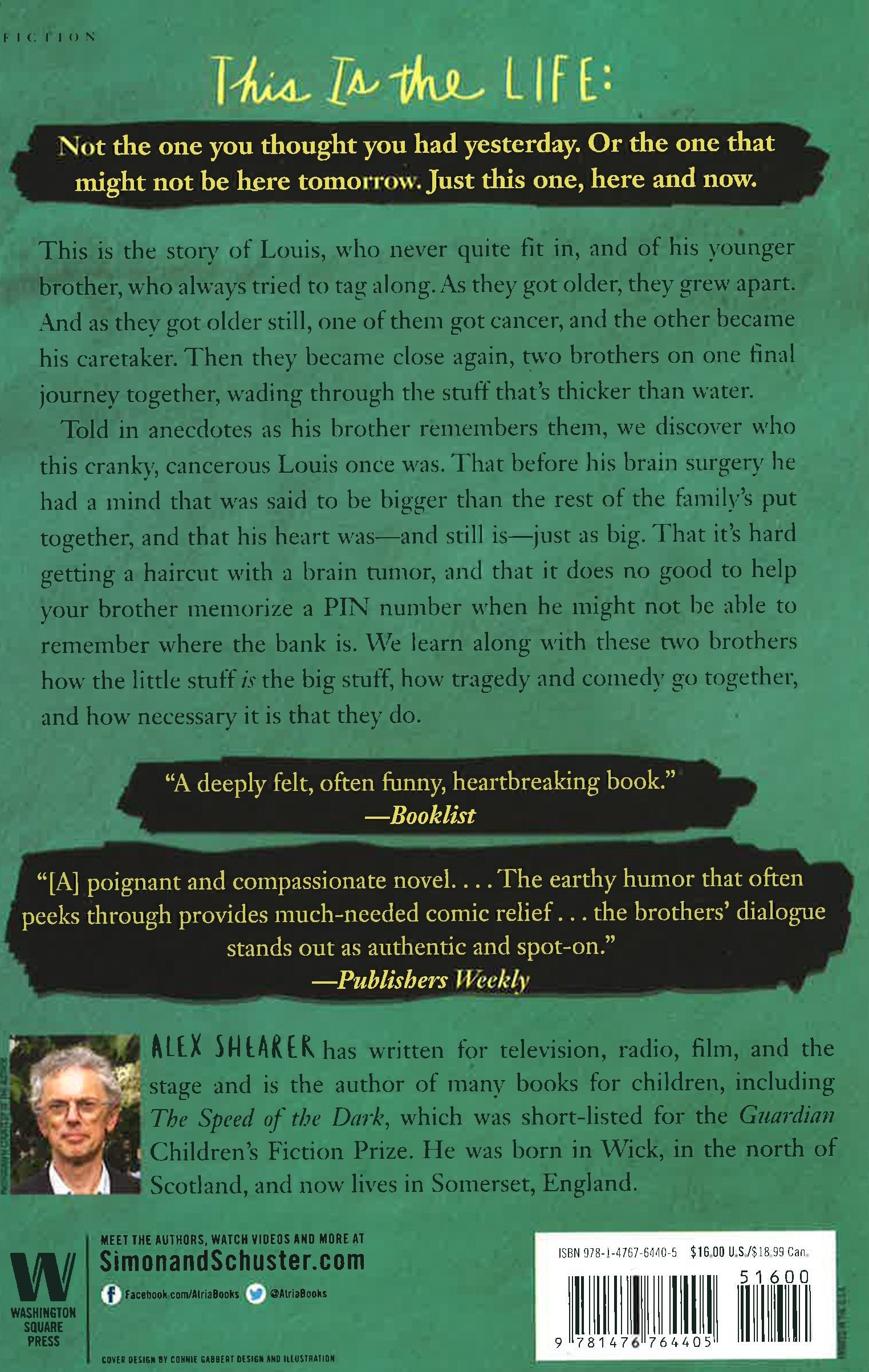 American Library Association Notable Book In the spirit of #1 New York Times bestseller The Fault in Our Stars, a "lovely, touching book" (Alexander McCall Smith) about two estranged brothers who come together when one of them discovers he has a brain tumor and the other emerges as his caretaker. This is the life: Not the one you thought you had yesterday. Or the one that might not be here tomorrow. Just this one. Here and now... This is the story of Louis, who never quite fit in, and of his younger brother, who always tried to tag along. As they got older, they grew apart. And as they got older still, one of them got cancer, and the other became his caretaker. Then they became close again, two brothers on one final journey together, wading through the stuff that's thicker than water. Told in anecdotes as his brother remembers them, we discover who this cranky, cancerous Louis once was. That before his brain surgery he had a mind that was said to be bigger than the rest of the family's put together, and that his heart was--and still is--just as big. That it's hard getting a haircut with a brain tumor, and that it does no good to help your brother memorize a PIN number when he might not be able to remember where the bank is. We learn along with these two brothers how the little stuff is as big as the big stuff, how tragedy and comedy go together, and how necessary it is that they do. Inspired by Shearer's experiences when his own brother was dying and written with a warm touch that is at once tender and achingly funny, This Is the Life is a moving testimony to both the resilience of the human spirit and the importance of the simpler things in life, like not taking a dying man's tea kettle away.