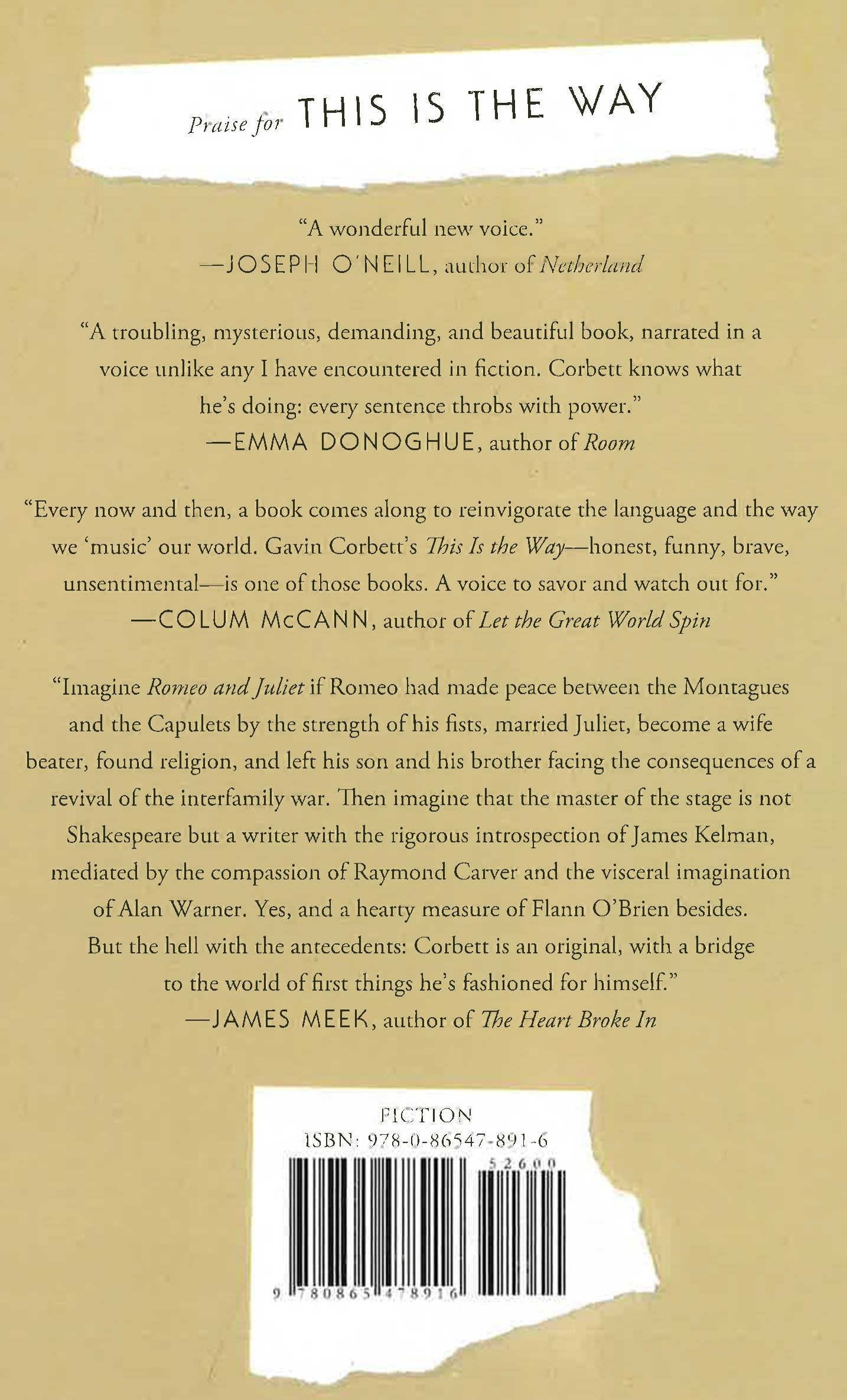 Anthony Sonaghan is hiding out in an old tenement house in Dublin: he fears he's reignited an ancient feud between the two halves of his family. Twenty-first-century Dublin may have shopping malls and foreign exchange students, but Anthony is from an Irish Travelling community, where blood ties are bound deeply to the past. When his roguish uncle Arthur shows up on his doorstep with a missing toe, delirious and apparently on the run, history and its troubles are following close behind him--and Anthony will soon have to face the question of who he really is. In prose of exceptional vividness, Gavin Corbett brings us a narrator with the power to build a new, previously unimagined world. His language, shot through with dreams and myths, summons a vision of Ireland in which a premodern spirit has somehow survived into contemporary life, brooding and overlooked. Funny, terrible, unsettling, fiercely unsentimental, "This Is the Way "is haunted by some of Ireland's greatest writers even as it breaks new ground and asks afresh why the imagination is so necessary to survival.