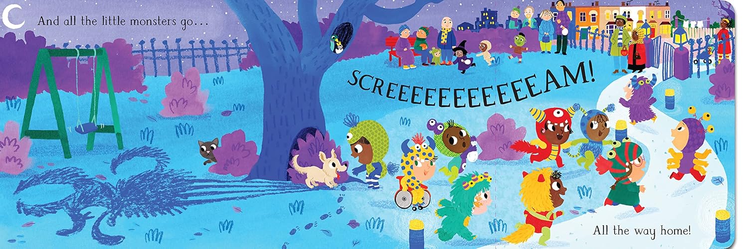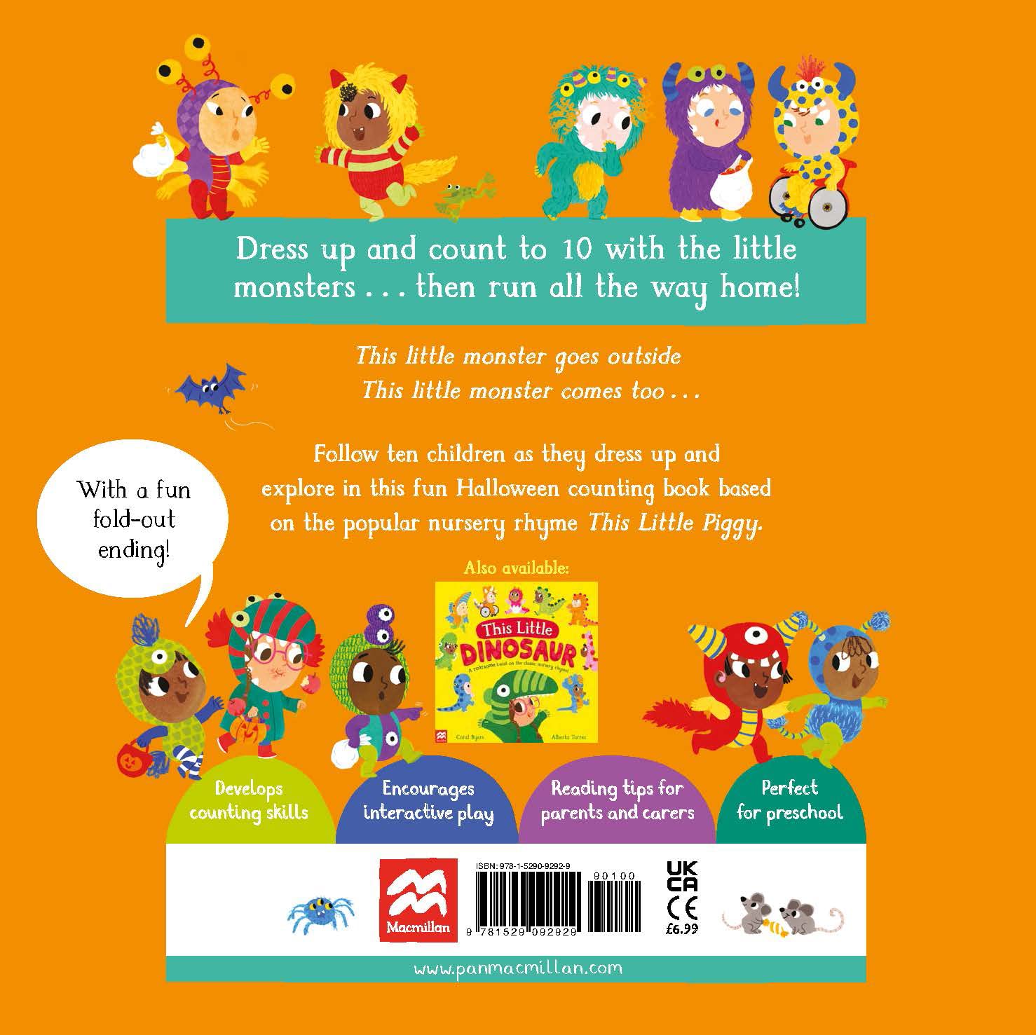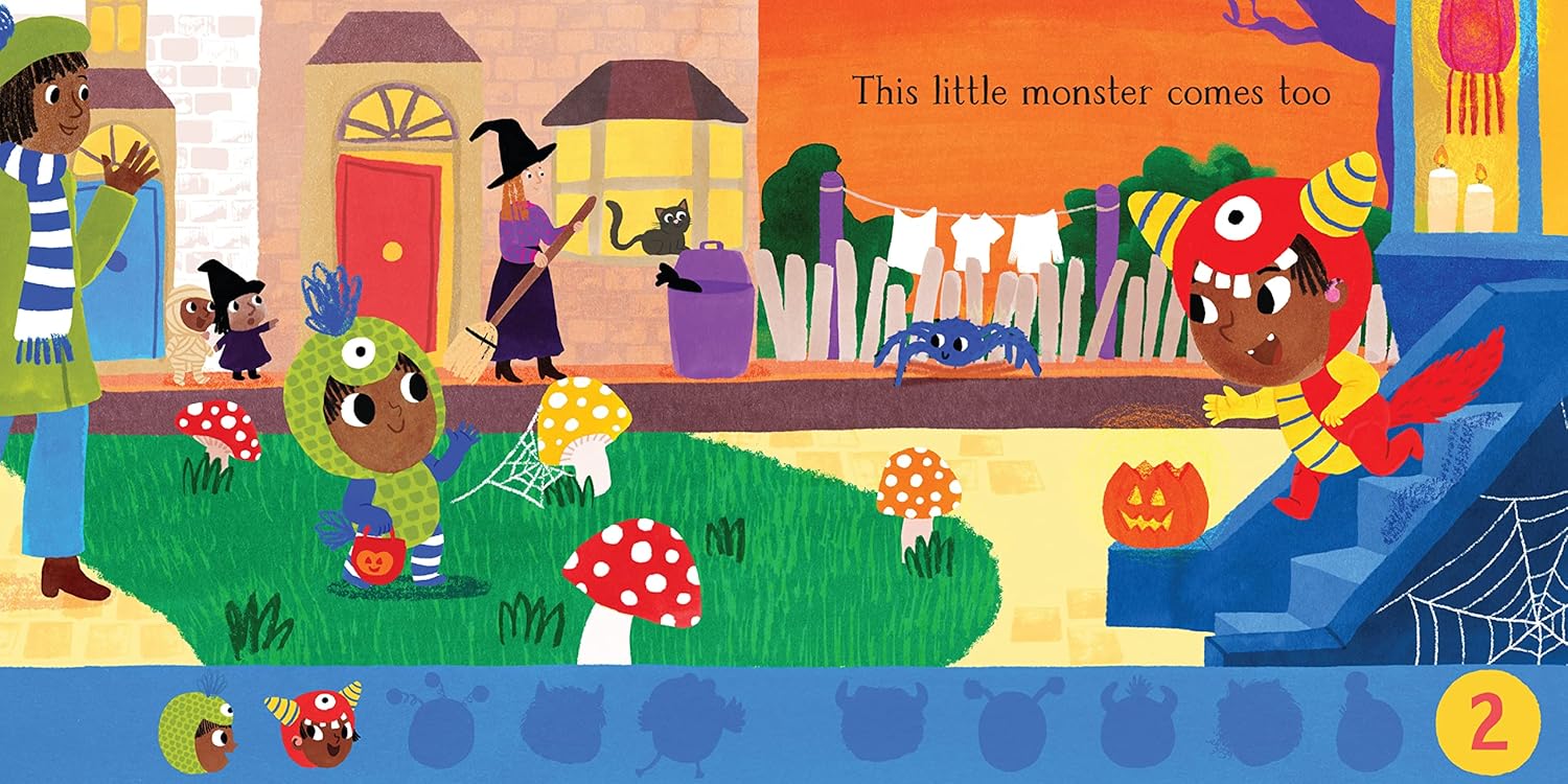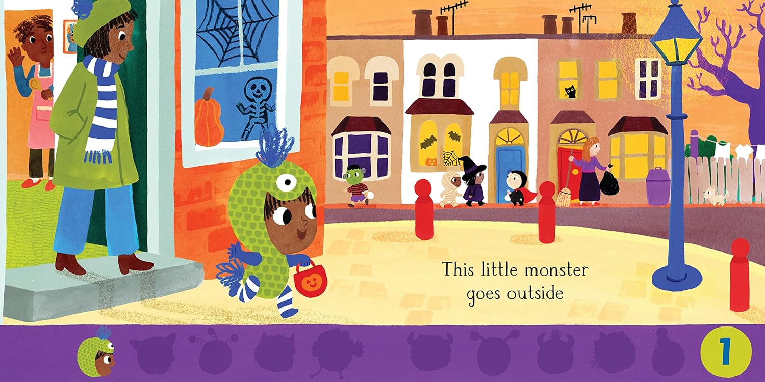 Count and explore with the dressed-up little monsters as they go on a trick-or-treat adventure, then run all the way home!