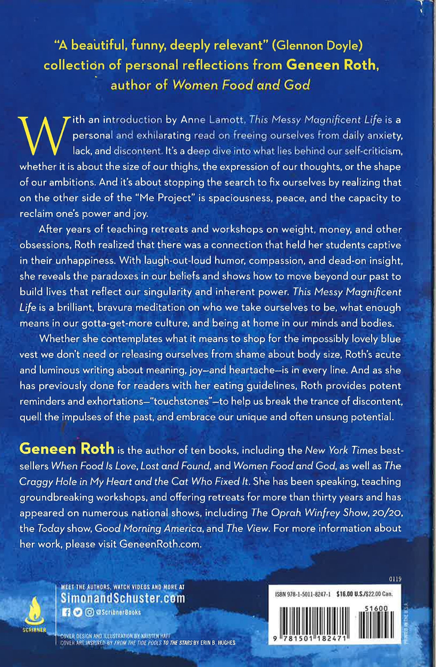 This Messy Magnificent Life explores the personal beliefs, hidden traumas, and social pressures that shape not just women's feelings about their bodies but also their confidence, choices, and relationships. After years of teaching retreats and workshops on weight, money, and other obsessions, Roth realized that there was a connection that held her students captive in their unhappiness. With laugh-out-loud humor, compassion, and dead-on insight she reveals the paradoxes in our beliefs and shows how to move beyond our past to build lives that reflect our singularity and inherent power. This Messy Magnificent Life is a brilliant, bravura meditation on who we take ourselves to be, what enough means in our gotta-get-more culture, and being at home in our minds and bodies.
