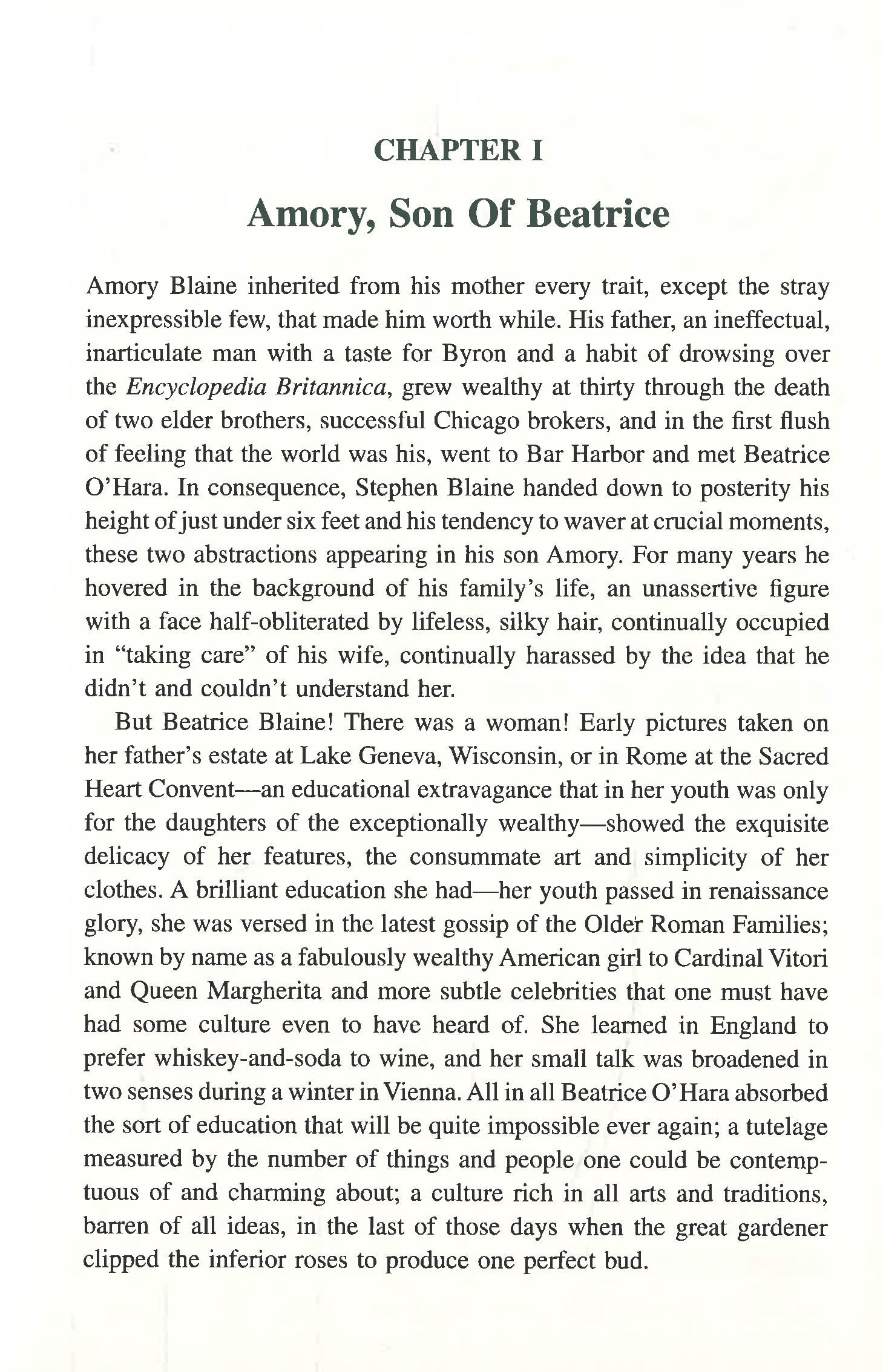 Published in 1920, This Side of Paradise is the debut novel of F. Scott Fitzgerald. It follows the story of protagonist Amory Blaine as he attends Princeton University and later serves in the army in World War 1, whilst exploring the themes of love corrupted by greed and status seeking. As a result of the success of this novel, F. Scott Fitzgerald successfully won over and consequently married his ex-lover Zelda Sayre.