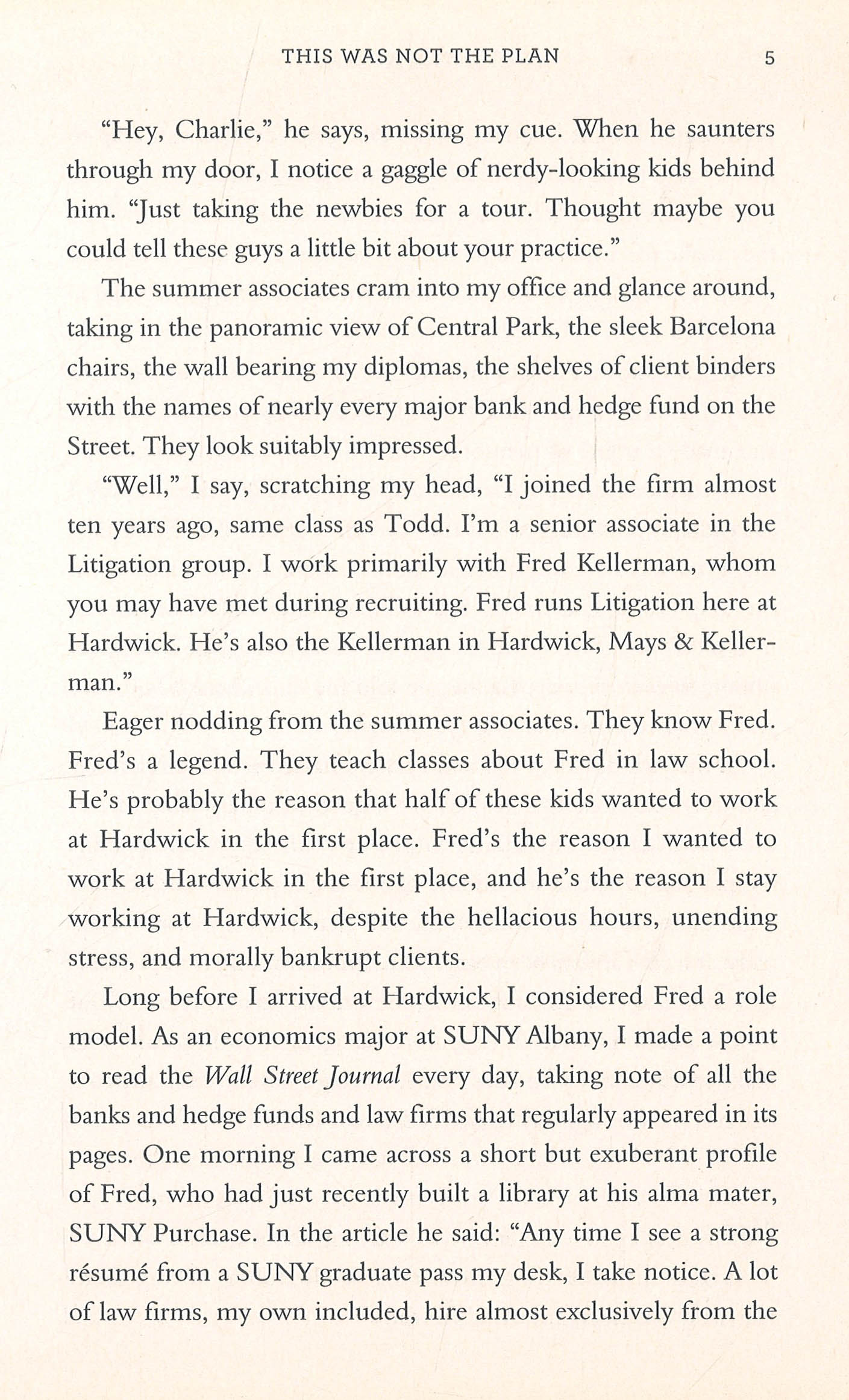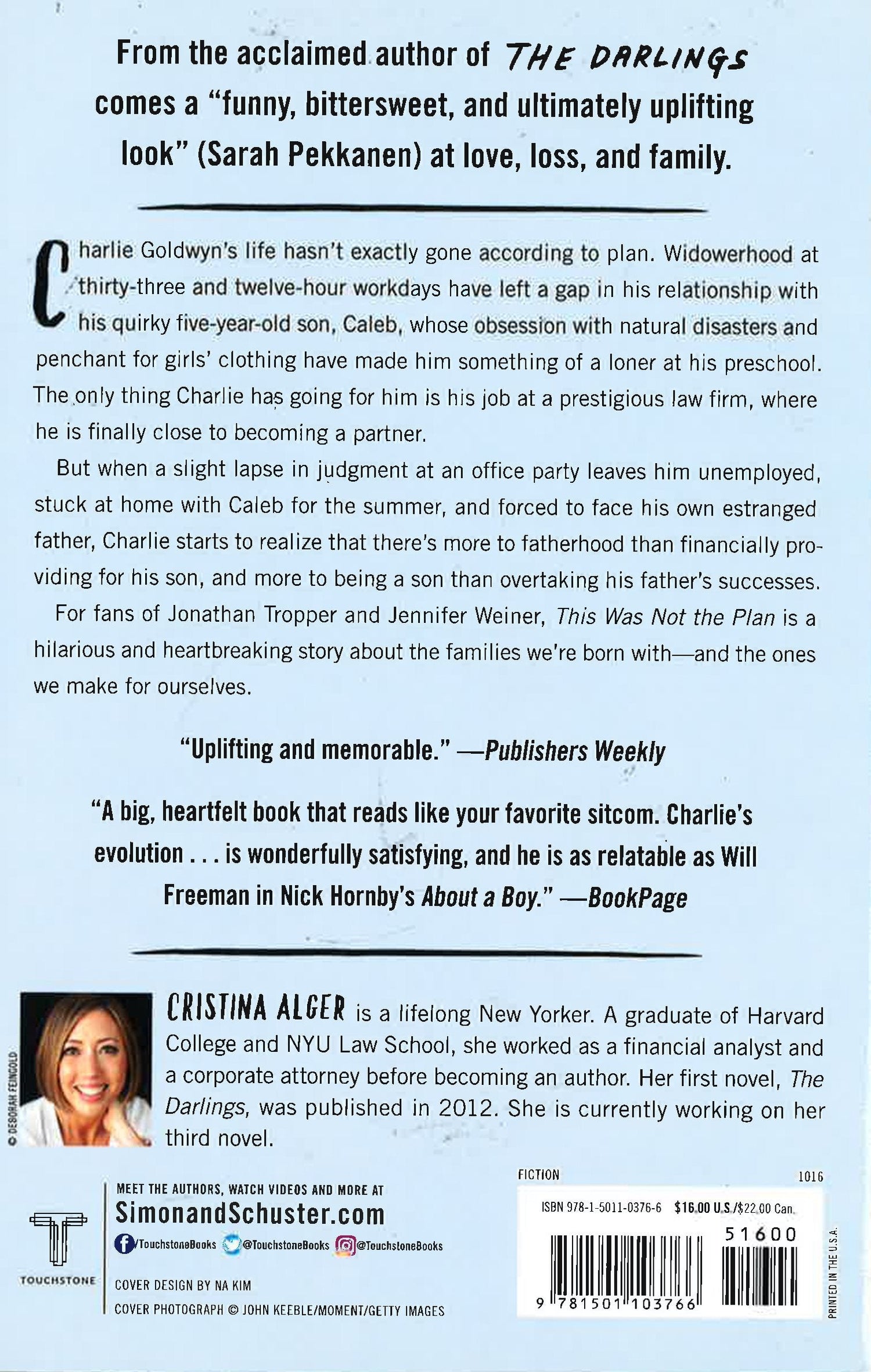 Charlie Goldwyn’s life hasn’t exactly gone according to plan. Widowerhood at thirty-three and twelve-hour workdays have left a gap in his relationship with his quirky five-year-old son, Caleb, whose obsession with natural disasters and penchant for girls’ clothing have made him something of a loner at his preschool. The only thing Charlie has going for him is his job at a prestigious law firm, where he is finally close to becoming a partner.But when a slight lapse in judgment at an office party leaves him humiliatingly unemployed, stuck at home with Caleb for the summer, and forced to face his own estranged father, Charlie starts to realize that there’s more to fatherhood than financially providing for his son, and more to being a son than overtaking his father’s successes.
