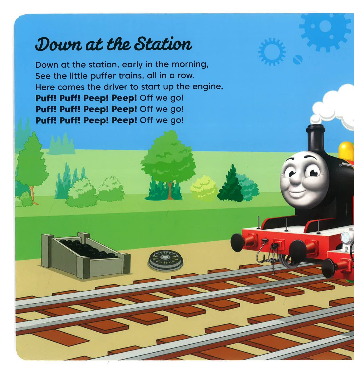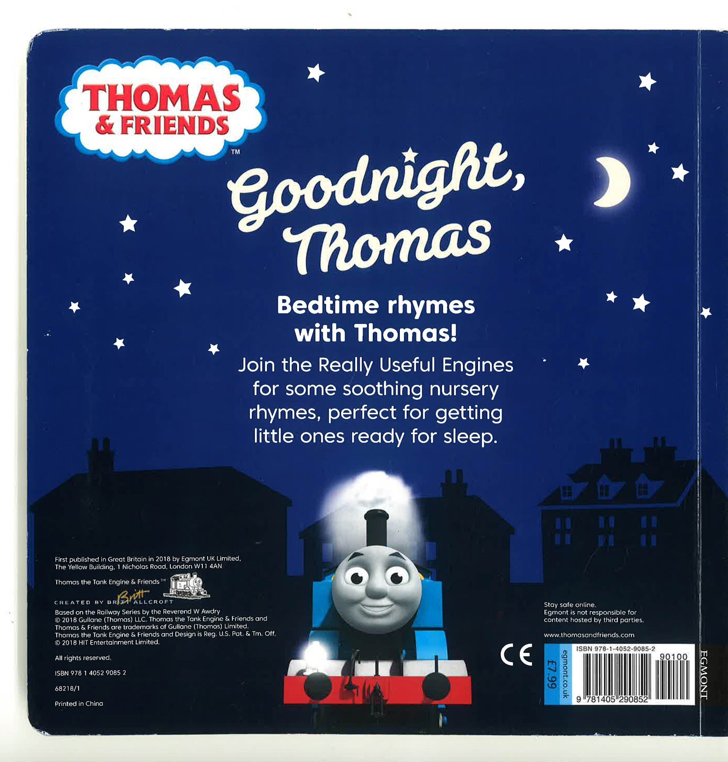 Join Thomas and friends for some bedtime nursery rhymes, perfect for getting little ones ready for sleep. Includes Down at the Station, Star Light, Star Bright, Twinkle, Twinkle, Little Star and more! The book finishes with a simple Thomas pop, so sleepy fans can say goodnight to their favourite engine friend.