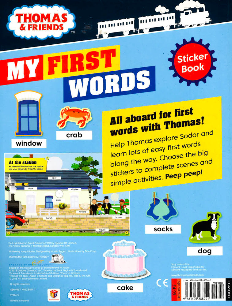 Join Thomas as he helps toddlers practise easy first words in this colourful sticker book. It's packed with sticker scenes, simple activities, fun-filled pictures of favourite engine friends and big bright stickers for little hands.Join Thomas as he helps toddlers practise easy first words in this colourful sticker book. It's packed with sticker scenes, simple activities, fun-filled pictures of favourite engine friends and big bright stickers for little hands. Thomas & Friends is a great way to pass on the tradition of Thomas to early readers. Children aged 2 and up will love meeting classic characters such as Percy, James, Gordon, and Toby down on The Fat Controller's railway. Thomas has been teaching children lessons about life and friendship for over 70 years. He ranks alongside other beloved character such as Paddington Bear, Winnie-the-Pooh and Peter Rabbit as an essential part of our literary heritage.