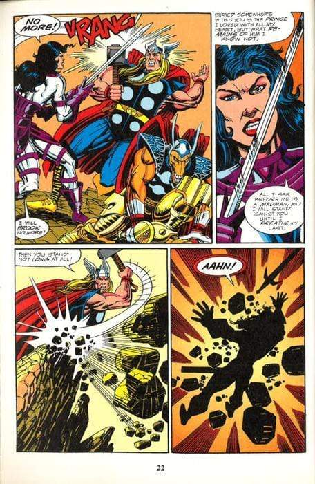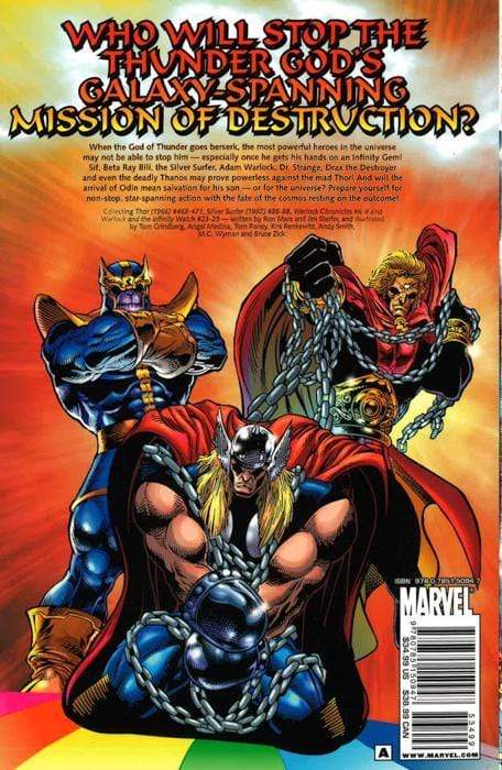 When the God of Thunder goes berserk, the most powerful heroes in the universe may not be able to stop him! See Thor tear through the ranks of Beta Ray Bill, Silver Surfer, Adam Warlock, Dr. Strange, Drax the Destroyer and even Thanos! And when the mad Thor gets his hands on the Infinity Gem of Power, even Odin may be powerless to stop him!