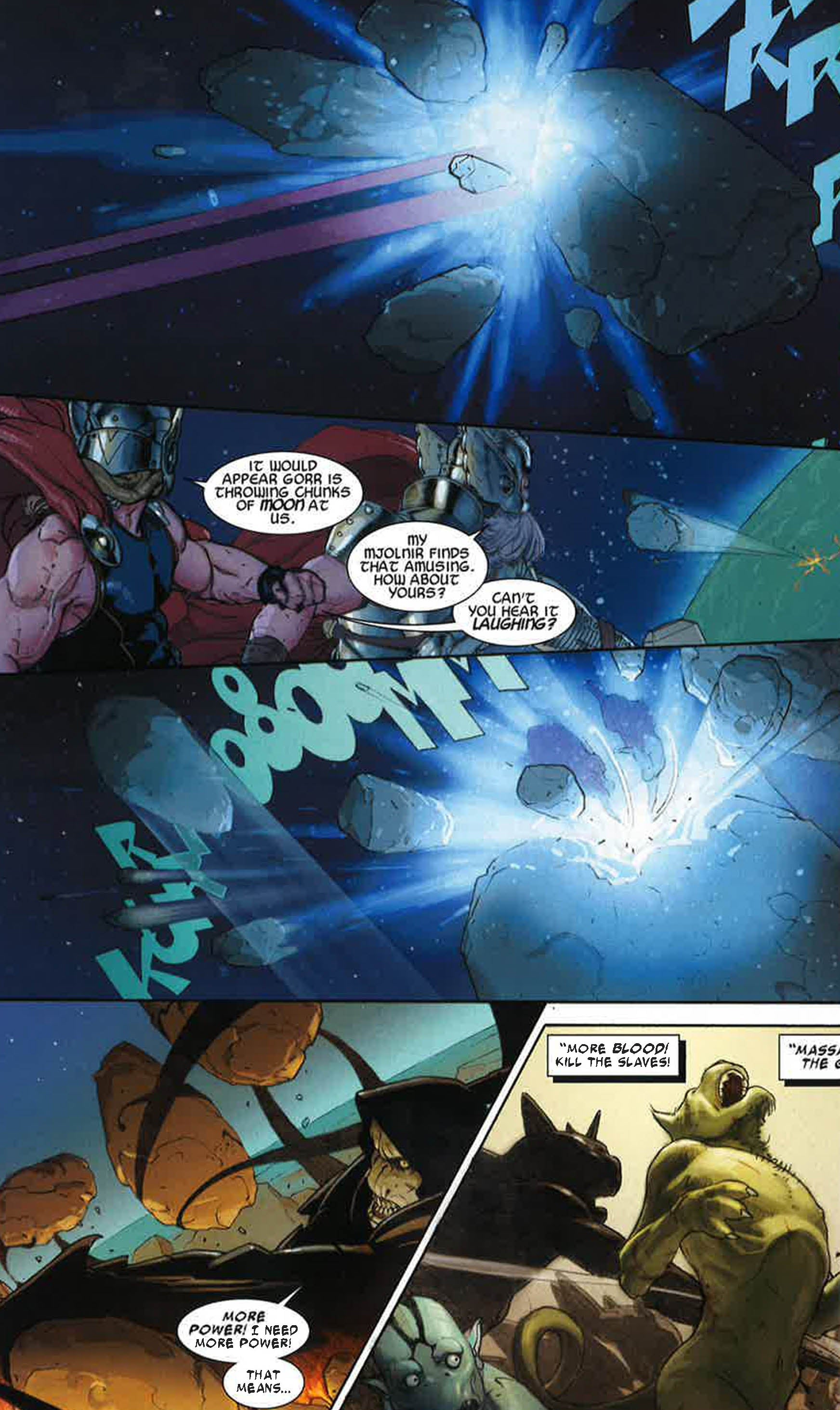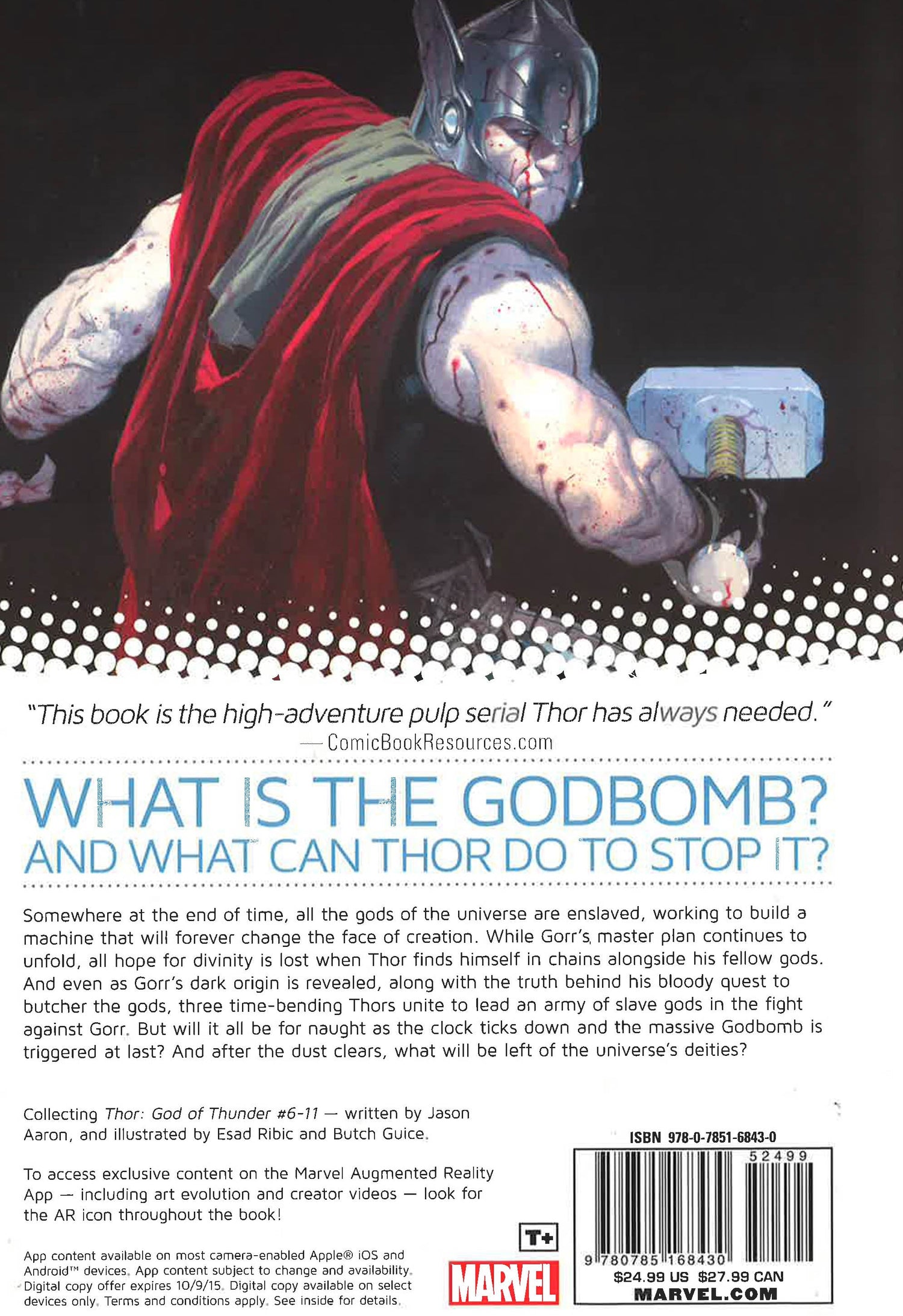 Somewhere at the end of time, all the gods of the universe are enslaved, working to build a machine that will forever change the face of creation. What is...the Godbomb? And what can Thor, the last free god in all the cosmos, do to stop it? As Gorr's master plan continues to unfold, all hope for divinity is lost as Thor finds himself in chains alongside his fellow gods. As the clock ticks down on one very large bomb, as enslaved gods look to the skies for a savior, enter...the Girls of Thunder? COLLECTING: Thor: God of Thunder 6-11. Also includes exclusive AR video content !
