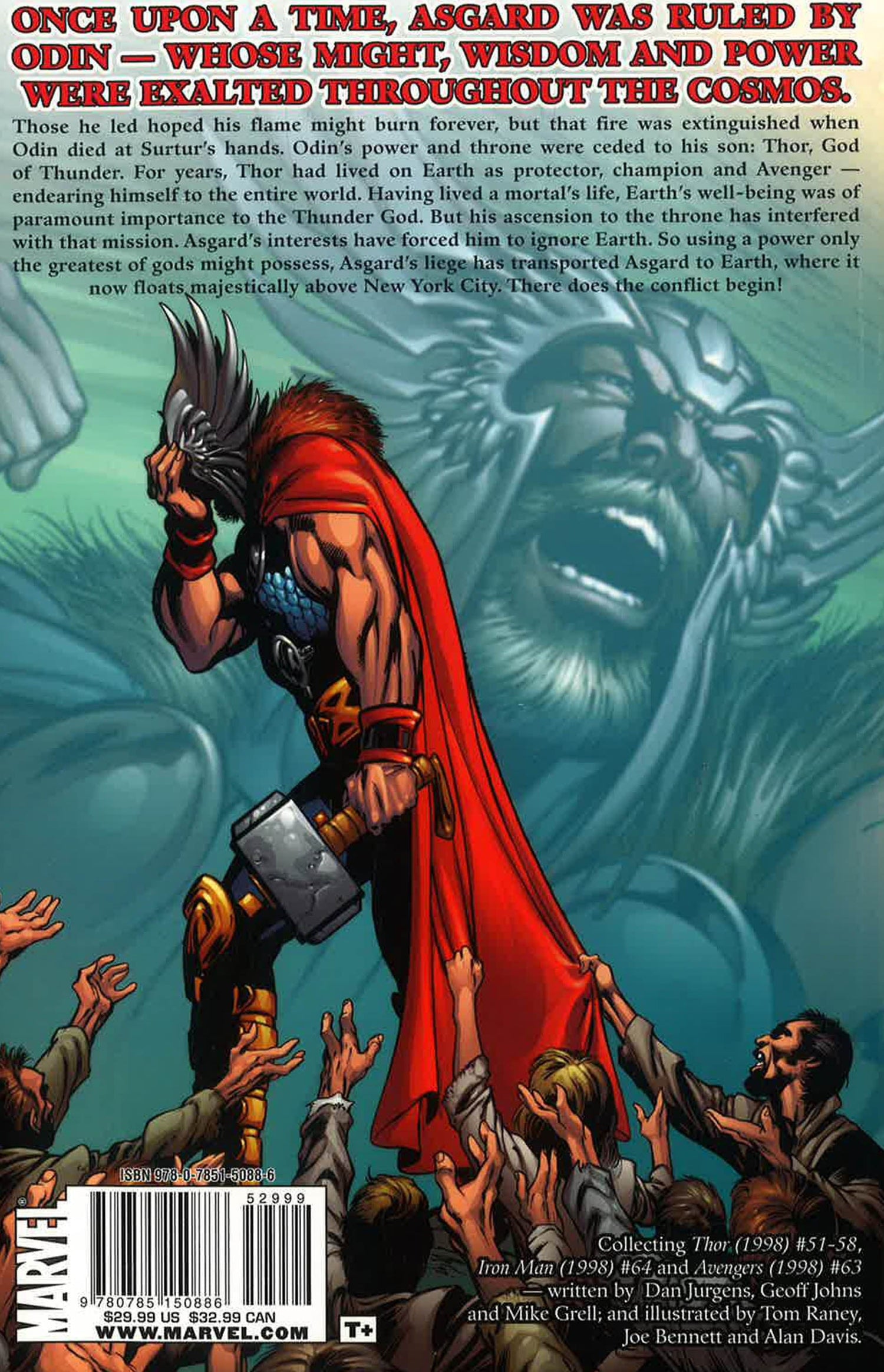 After Odin's death, the power and throne of Asgard were inherited by his son--Thor. For years, he lived on Earth as protector, champion and Avenger. having lived a mortal's life, Earth's well-being was of paramount importance to Thor. But his ascension interfered with that mission. Asgard's interests forced him to ignore Earth. So using a power only the greatest of gods might possess, Asgard's liege transported Asgard to Earth. There does the conflict begin...
