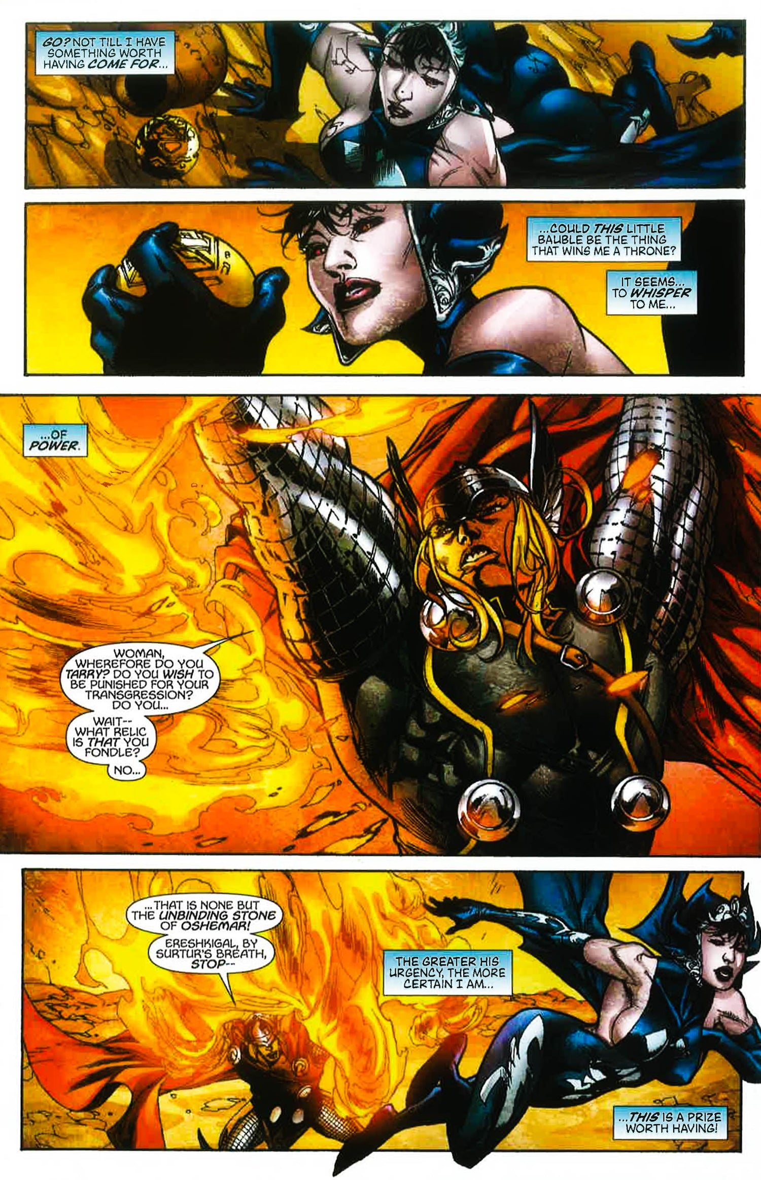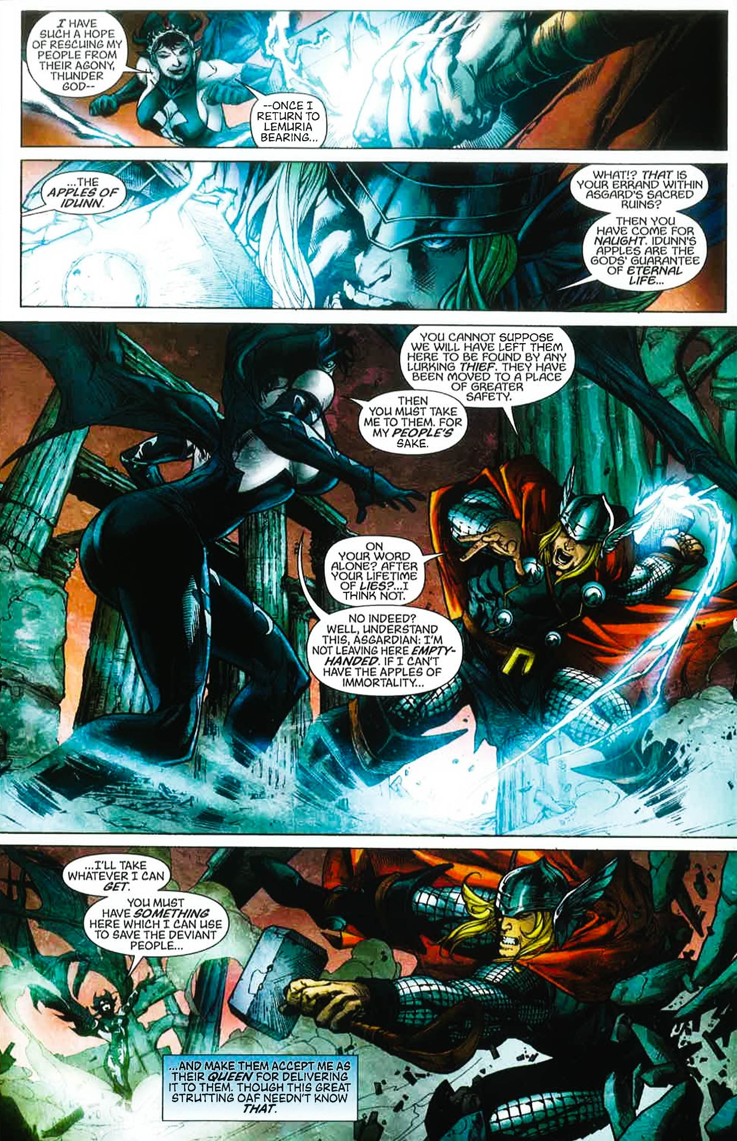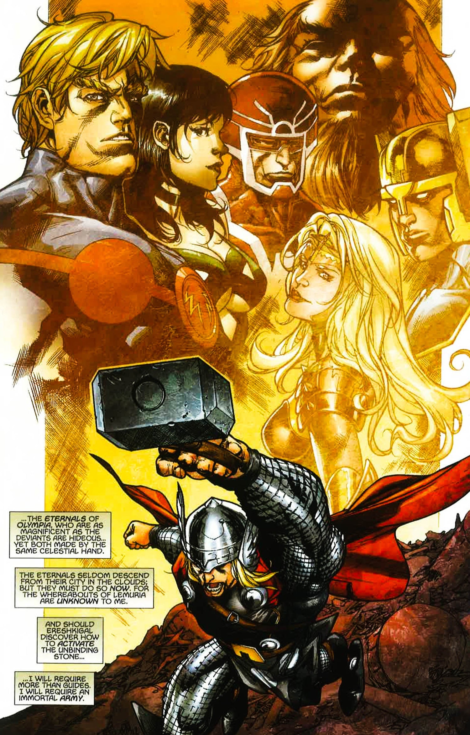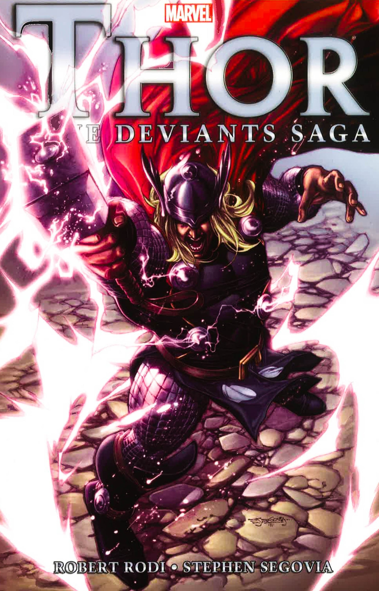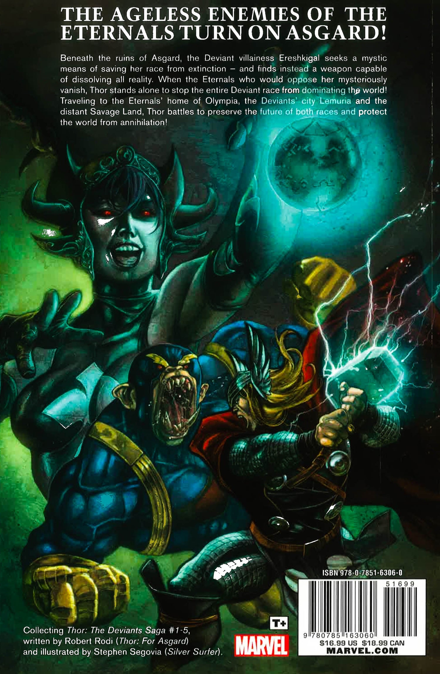 Beneath the ruins of Asgard, the Deviant villainess Ereshkigal seeks a mystic means of saving her race from extinction--and finds instead a weapon capable of dissolving all reality. With the Eternals who would oppose her mysteriously vanished, Thor stands alone--to stop the entire Deviant race from dominating the world! COLLECTING: Thor: The Deviants Saga #1-5.