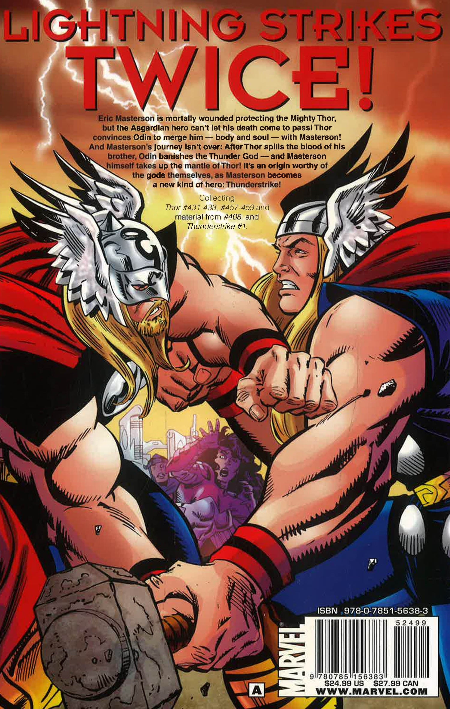 To save Thor's life, Odin places his son into the body of human architect and single father Eric Masterson. And after living for months as Thor, facing such evils as the triple threats of Loki, Ulik and the Enchantress, will Masterson be willing to give up his life as a hero once the real Thor returns? It's Thunder God versus Thunder God, leading to the creation of the new hero: Thunderstrike!
