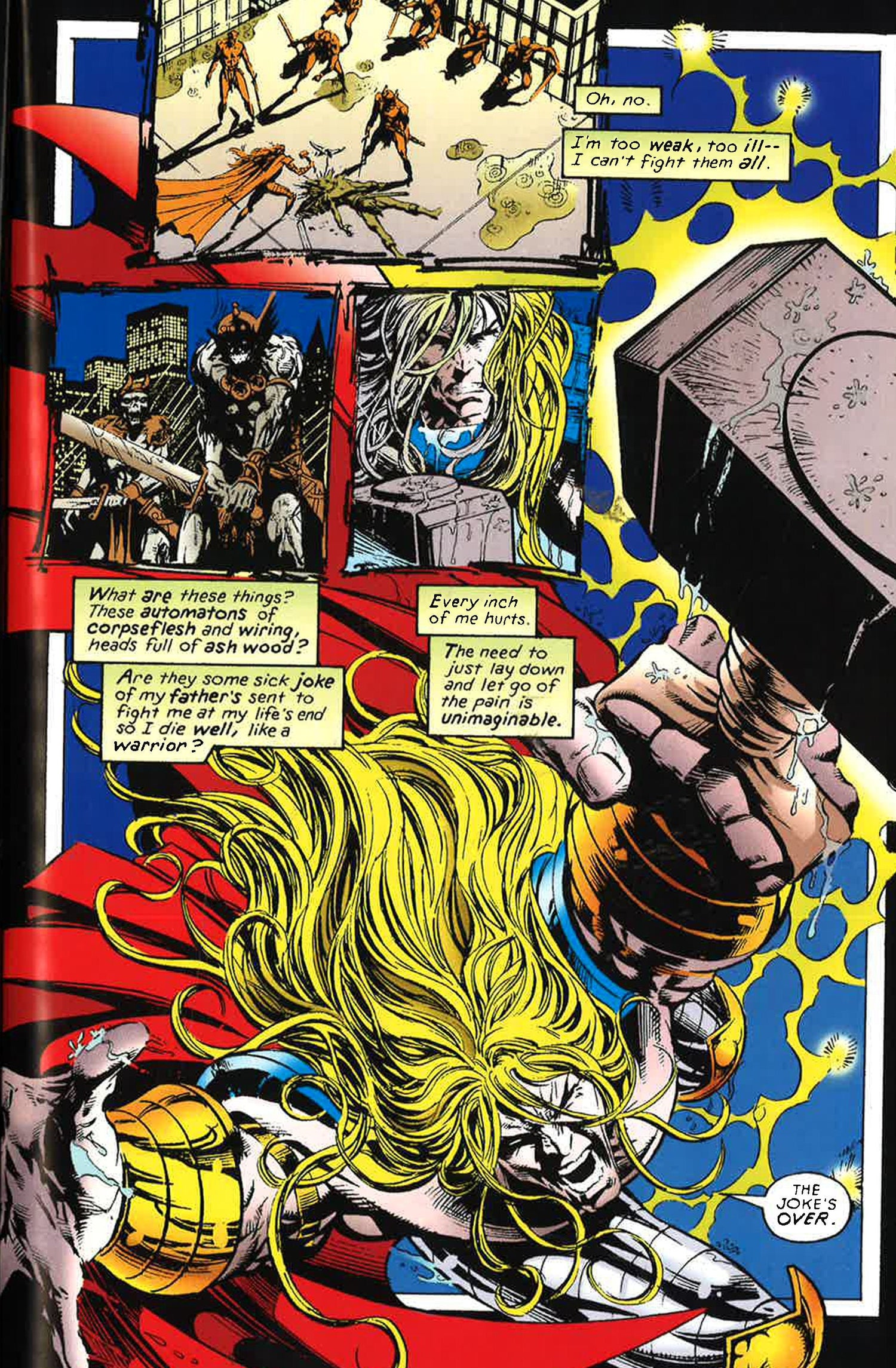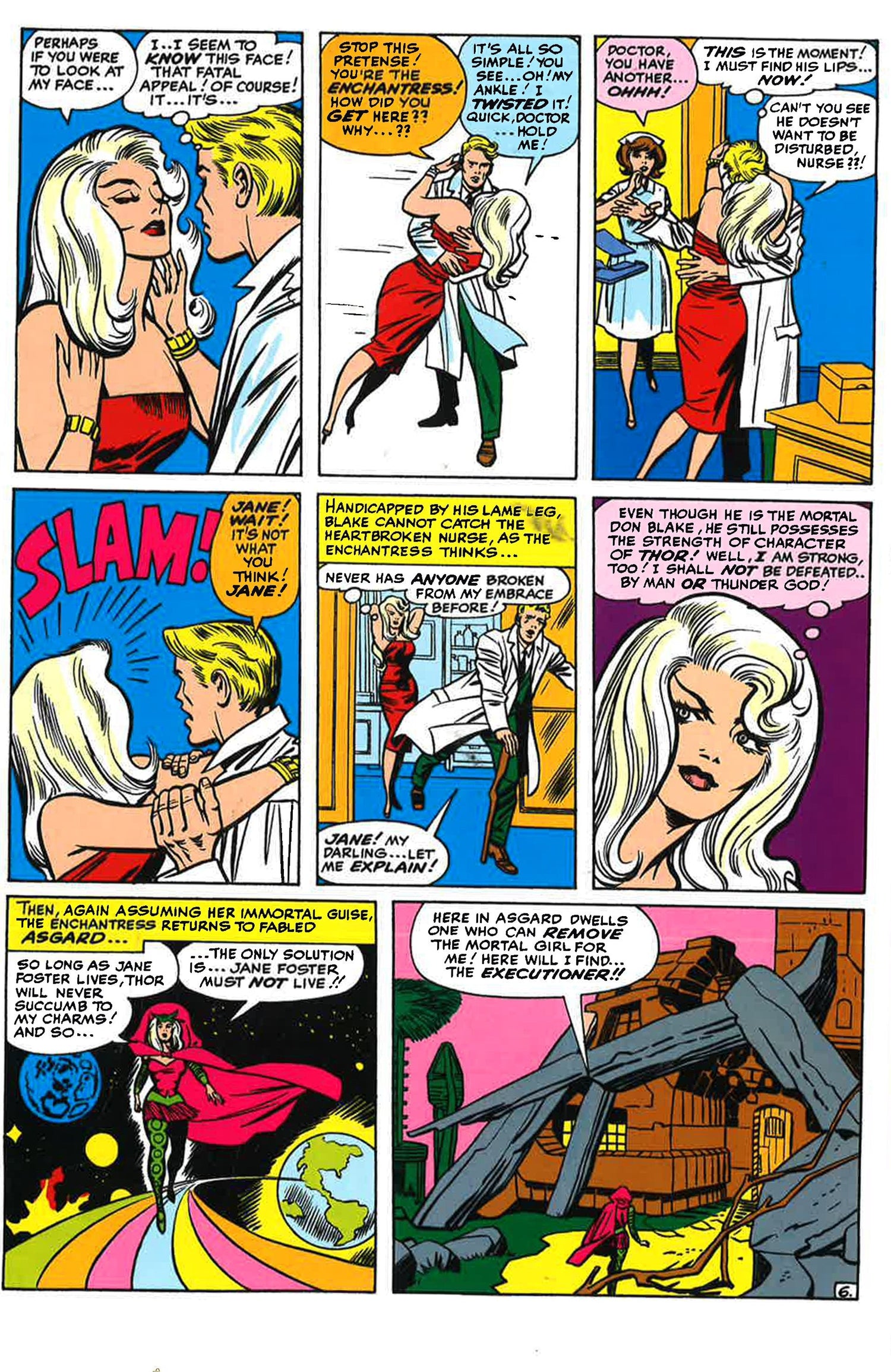 Thor and Beta Ray Bill have taken ill! Yggdrassil, the World Tree, has been grafted with an engine to hasten its destruction and bring about Ragnarok and the end of the world! What mysterious villain is behind it all, and can Thor figure it out in time to save all of existence? And when the God of Thunder finds an unlikely ally in the form of Amora, the Enchantress, his longtime foe, could there be romance blossoming between these age-old enemies? Plus: the first appearance of the Enchantress and the Executioner!