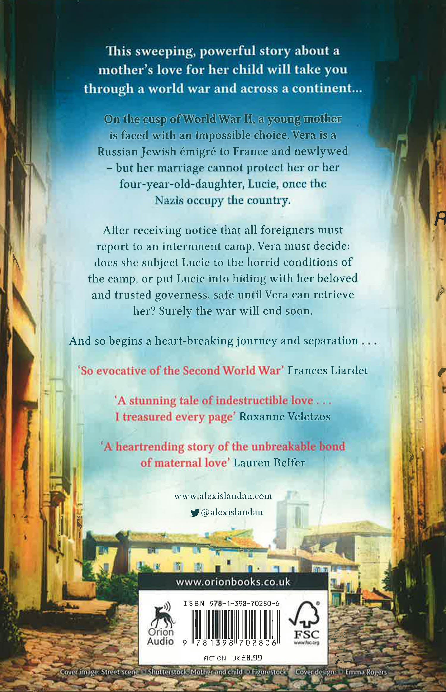 On the cusp of World War II, a young mother is faced with an impossible choice. Vera is a Russian Jewish émigré to France, newly wed - but her marriage cannot protect her or her four-year-old-daughter, Lucie, once the Nazis occupy the country.