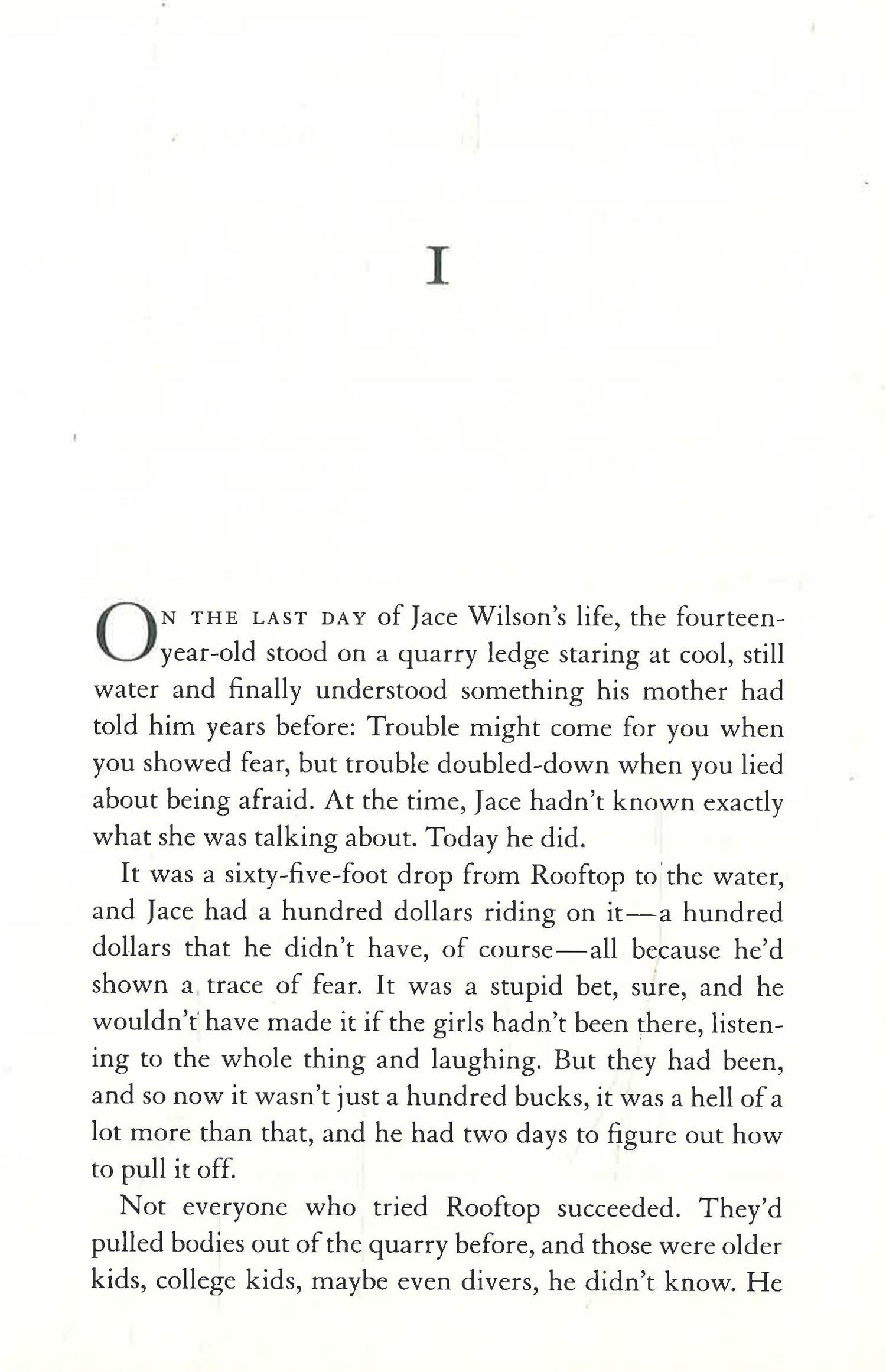 When fourteen-year-old Jace Wilson witnesses a brutal murder, he's plunged into a new life, issued a false identity and hidden in a wilderness skills program for troubled teens. The plan is to get Jace off the grid while police find the two killers.