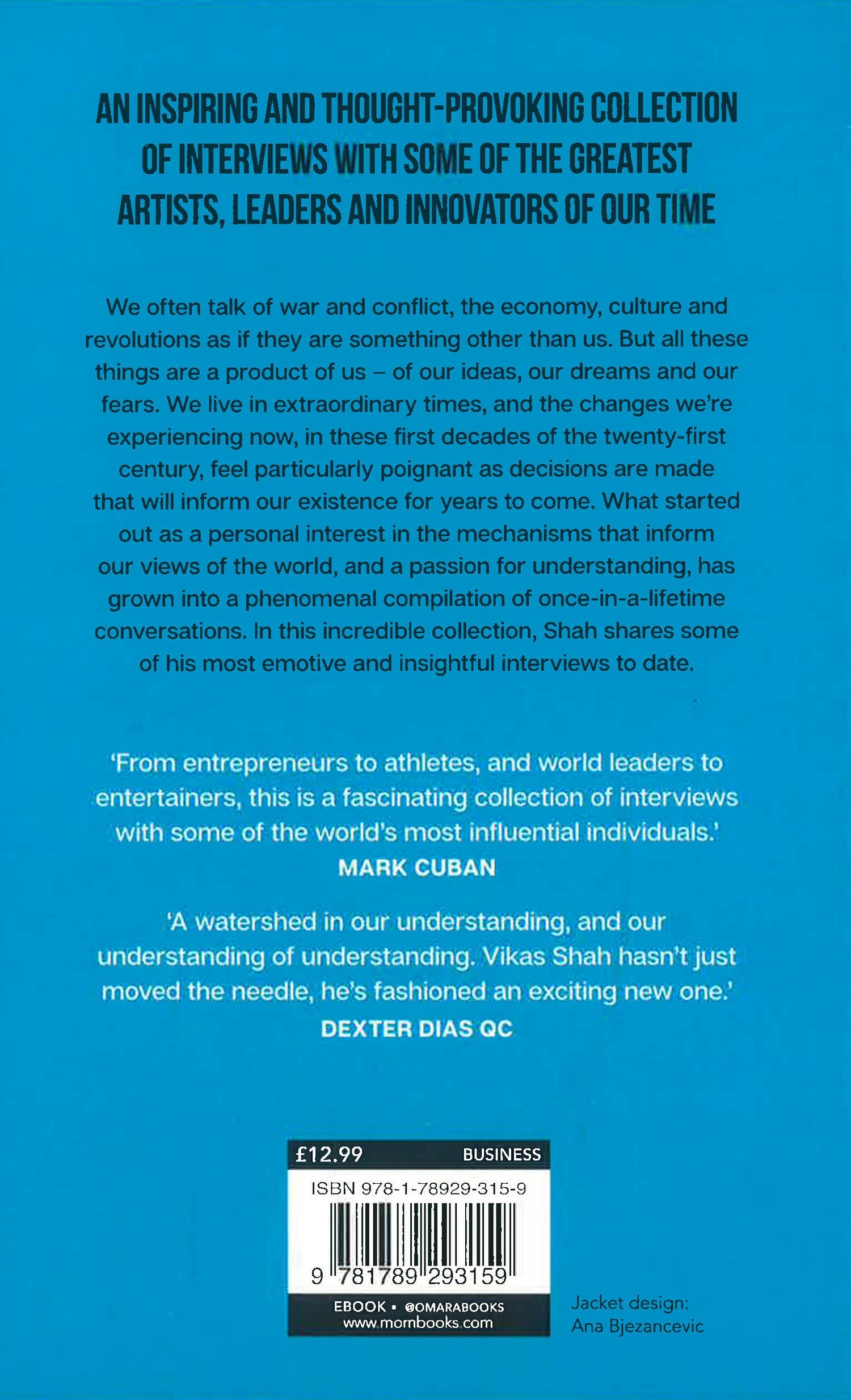 Since 2007, entrepreneur and philanthropist Vikas Shah has been on a mission to interview the people shaping our century. Including conversations with Nobel prizewinners, business leaders, politicians, artists and Olympians, he has been in the privileged position of questioning the minds that matter on the big issues that concern us all. We often talk of war and conflict, the economy, culture, technology and revolutions as if they are something other than us. But all these things are a product of us – of our ideas, our dreams and our fears. We live in fast-moving and extraordinary times, and the changes we’re experiencing now, in these first decades of the twenty-first century, feel particularly poignant as decisions are made that will inform our existence for years to come. What started out as a personal interest in the mechanisms that inform our views of the world, and a passion for understanding, has grown into a phenomenal compilation of once-in-a-lifetime conversations. In this incredible collection, Shah shares some of his most emotive and insightful interviews to date.