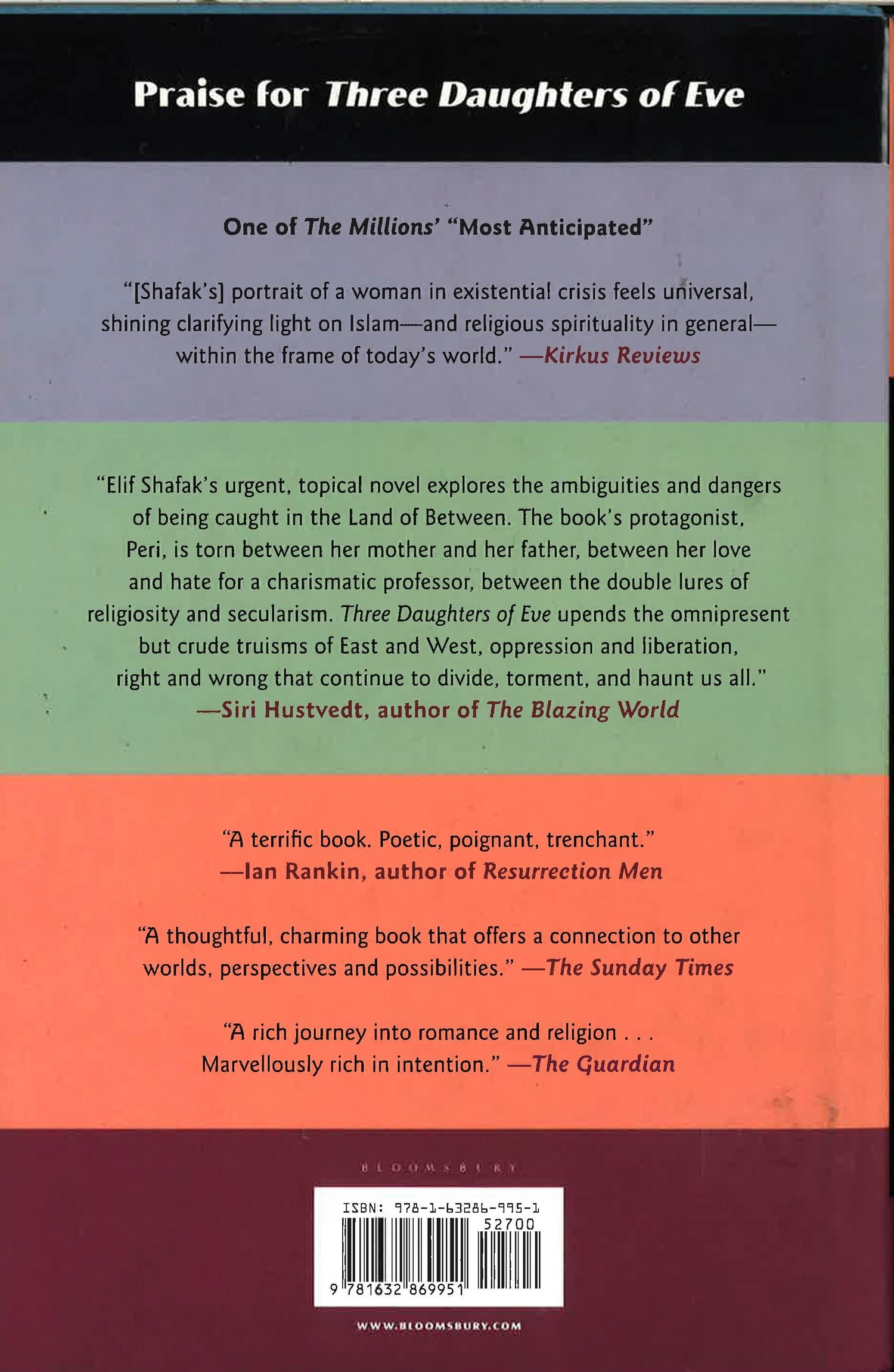 Peri, a married, wealthy, beautiful Turkish woman, is on her way to a dinner party at a seaside mansion in Istanbul when a beggar snatches her handbag. As she wrestles to get it back, a photograph falls to the ground -- an old polaroid of three young women and their university professor. A relic from a past -- and a love -- Peri had tried desperately to forget.Three Daughters of Eve is set over an evening in contemporary Istanbul, as Peri arrives at the party and navigates the tensions that simmer in this crossroads country between East and West, religious and secular, rich and poor. Over the course of the dinner, and amidst an opulence that is surely ill-begotten, terrorist attacks occur across the city. Competing in Peri's mind however are the memories invoked by her almost-lost polaroid, of the time years earlier when she was sent abroad for the first time, to attend Oxford University. As a young woman there, she had become friends with the charming, adventurous Shirin, a fully assimilated Iranian girl, and Mona, a devout Egyptian-American. Their arguments about Islam and feminism find focus in the charismatic but controversial Professor Azur, who teaches divinity, but in unorthodox ways. As the terrorist attacks come ever closer, Peri is moved to recall the scandal that tore them all apart.