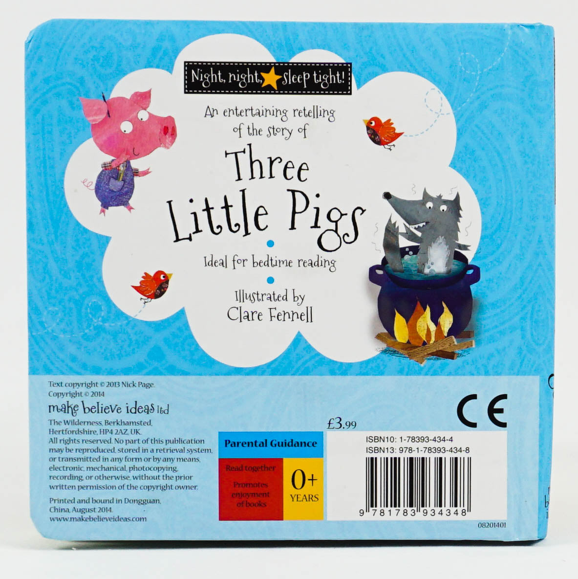 Retells, in rhyme, the story of the three little pigs and how they outsmart the big bad wolf.