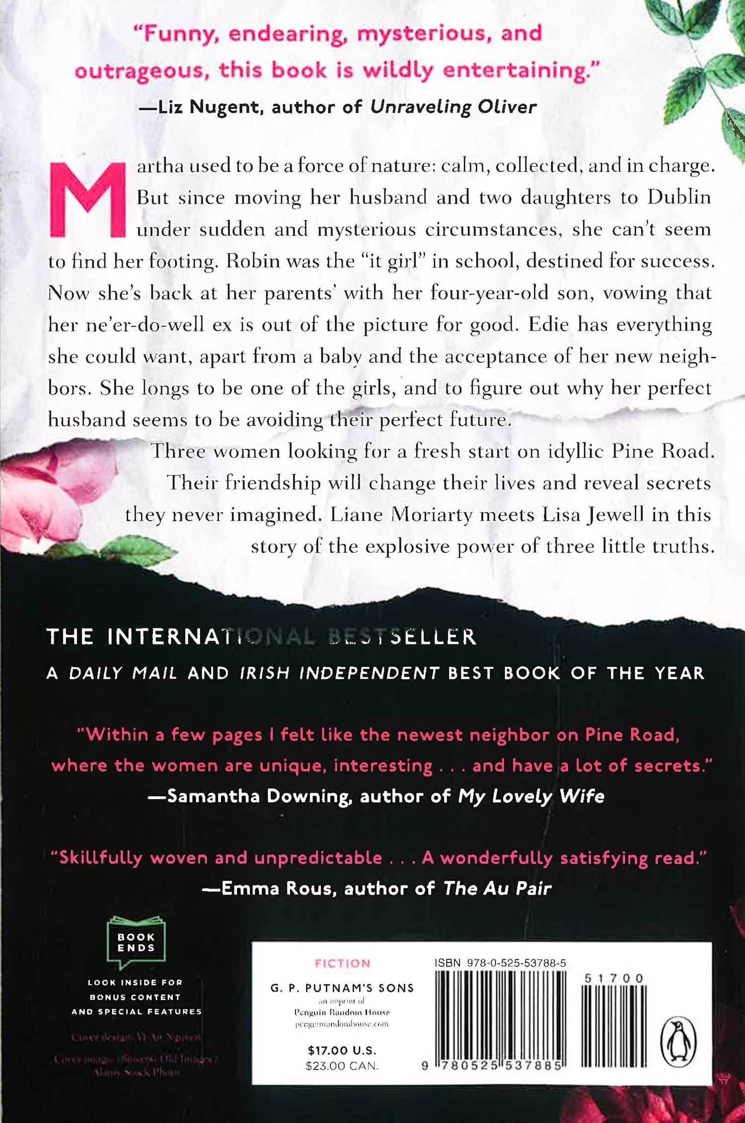 Martha used to be a force of nature: calm, collected, and in charge. But since moving her husband and two daughters to Dublin under sudden and mysterious circumstances, she can't seem to find her footing. Robin was the it girl in school, destined for success. Now she's back at her parents' with her four-year-old son, vowing that her ne'er-do-well ex is out of the picture for good. Edie has everything she could want, apart from a baby, and the acceptance of her new neighbors. She longs to be one of the girls, and to figure out why her perfect husband seems to be avoiding their perfect future. Three women looking for a fresh start on idyllic Pine Road. Their friendship will change their lives and reveal secrets they never imagined.