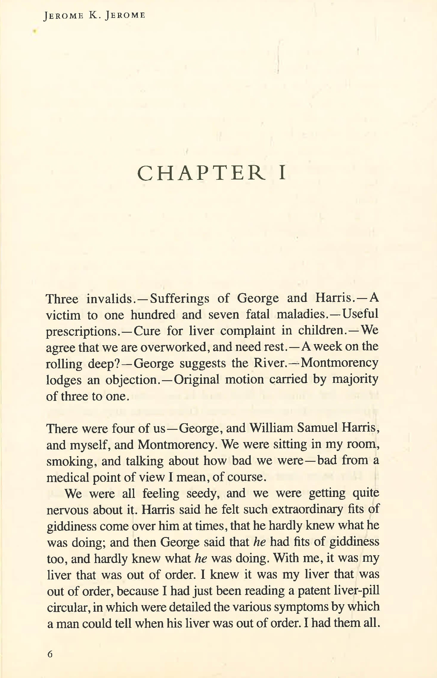 J. and his friends George and Harris decide that taking a boating holiday on the Thames from Kingston upon Thames to Oxford and back to Kingston is a great idea - what could go wrong? Originally intended to be a serious travel guide, the humorous elements soon took over and Three Men in a Boat (To Say Nothing of the Dog) has been considered a classic masterpiece of British humor since its first publication in 1889.