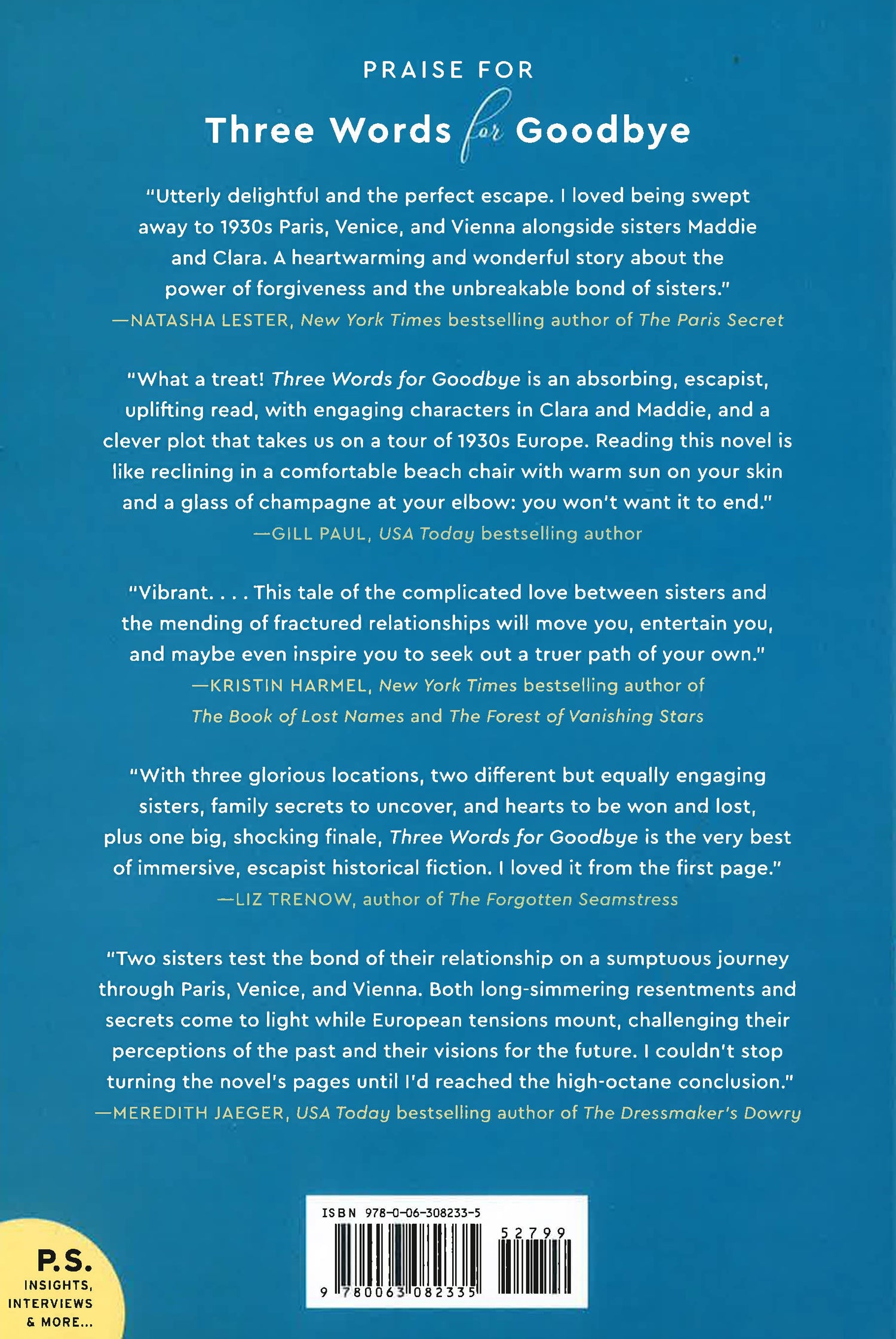 New York, 1937: When estranged sisters Clara and Madeleine Sommers learn their grandmother is dying, they agree to fulfill her last wish: to travel across Europe—together. They are to deliver three letters, in which Violet will say goodbye to those she hasn’t seen since traveling to Europe forty years earlier; a journey inspired by famed reporter, Nellie Bly.