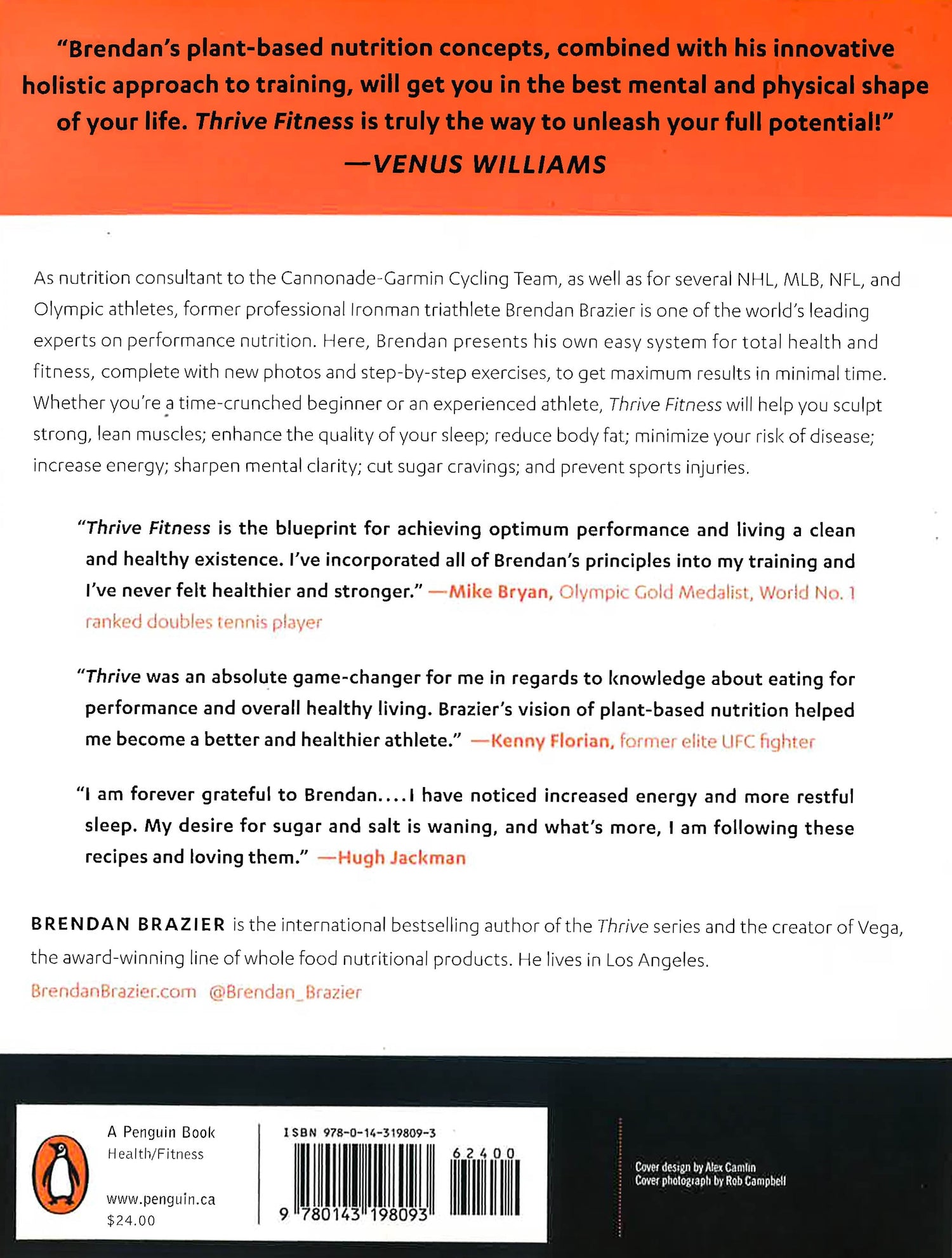 Head of nutrition for the Cannondale-Garmin Cycling Team, nutrition consultant to the pros, and former professional Ironman triathlete Brendan Brazier is one of the world's leading experts on nutrition for professional athletes. In Thrive Fitness, he presents his own easy system for total health and fitness, complete with new photos and step-by-step exercises, for maximum results in minimal time. Whether you're a time-crunched beginner or an experienced athlete, Thrive Fitness will help you sculpt strong, lean muscles, reduce body fat, prevent disease and injuries, increase energy, cut sugar cravings, and sharpen mental clarity. * This book may have reminder mark*