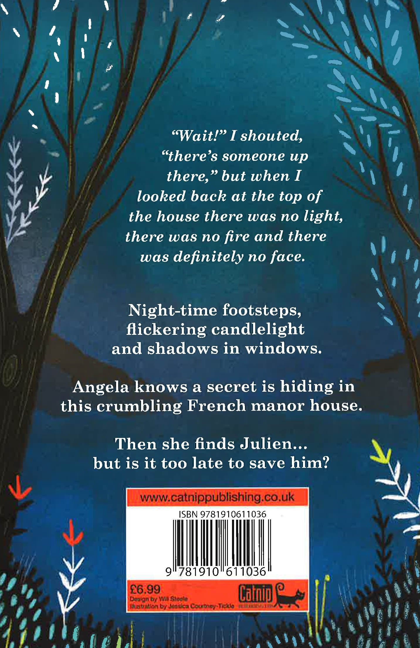 Life hasn't been great for Angela since tragedy took her family away. But Angela is given one last chance when she is invited on holiday with her Aunt Cece and her bratty cousins Kitty and Fliss. Angela tries to behave herself, but she knows secrets lie in the walls of their crumbling French holiday home. Soon night time foot steps, flickering candlelight and shadows in windows lead Angela to Julian. Who is he? Why is he trapped in the house? And what happened there over 100 years ago? Julian needs her help. Through saving him can Angela herself?